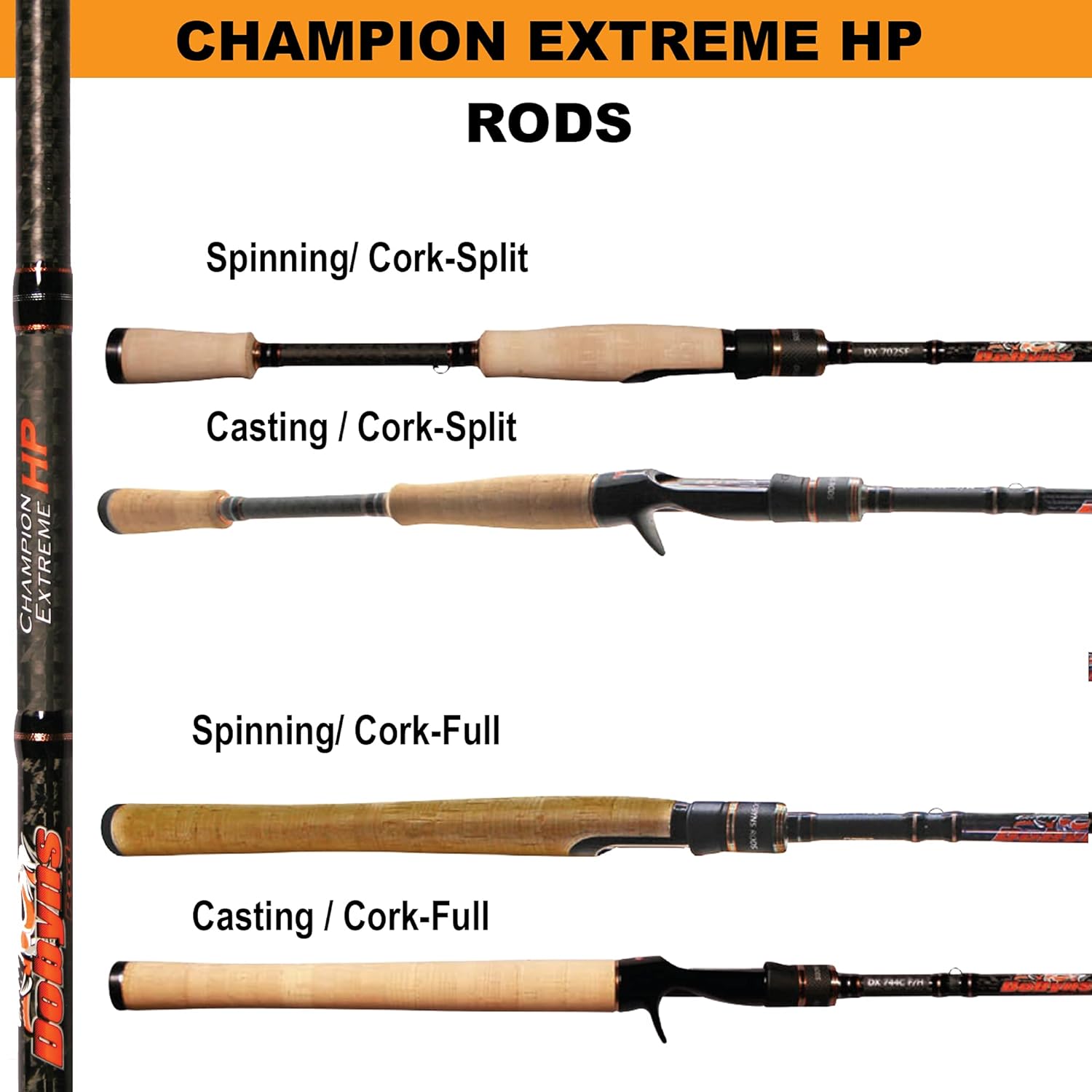 - BUILT FOR: Dropshot Rigs, Finesse Special, Shakey Heads and Dartheads. The Champion Extreme HP Series is sensitive, light, strong and balanced at an exceptional value! A tournament favorite, choose from 22-technique specific baitcaster and spinning rods.