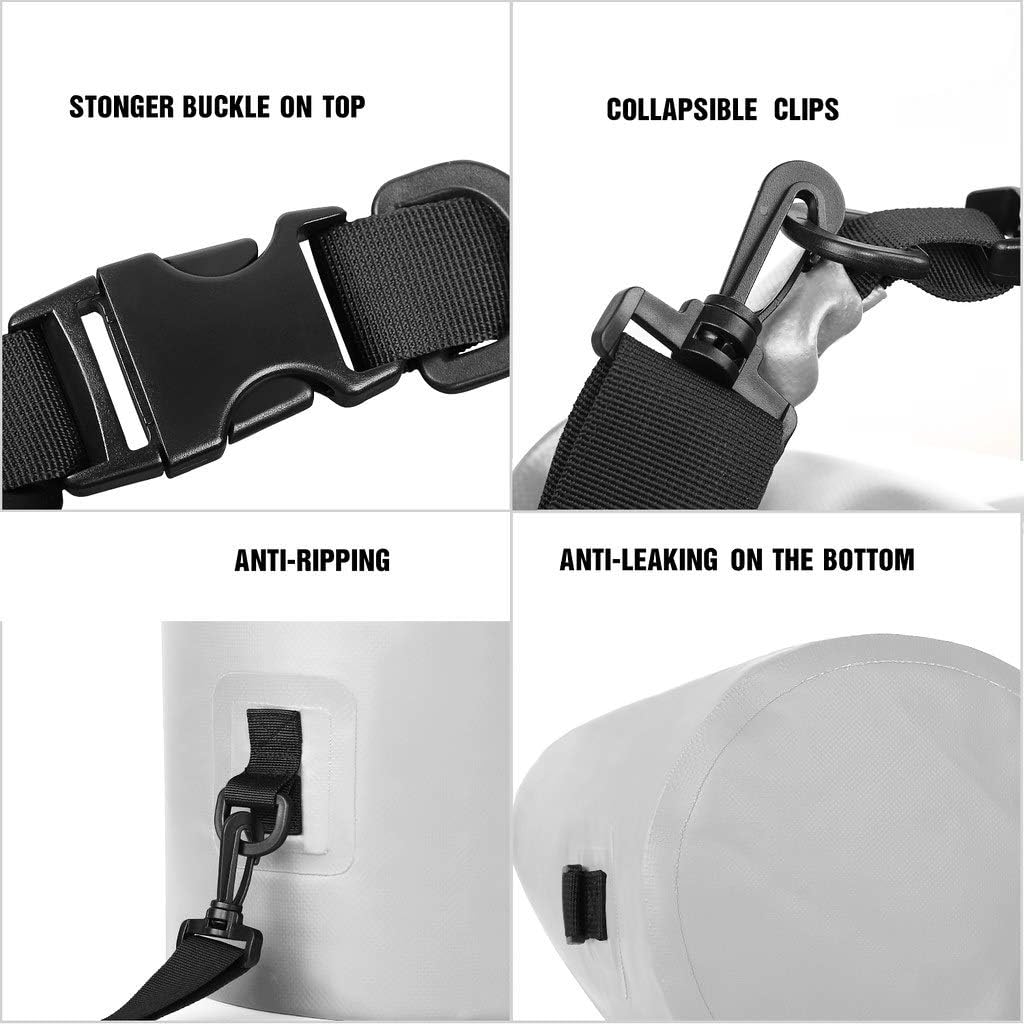 • VERSATILE AND DURABLE: You can leave the dry bag float on the water during river trip or other water sporting, no more worry about your items getting wet. The buckle and D-rings are upgraded with POM material, stronger than other traditional buckle. It will not break for frequent use