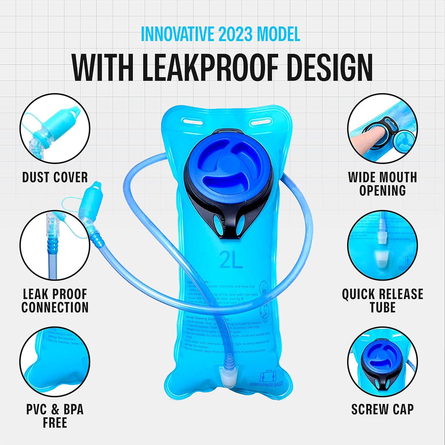 - *NEW* NO LEAKS 2025 MODEL - Our completely NEW and UPGRADED hydration bladder prevents all leaks due to our custom mouth piece and proprietary technology we've developed for our connecting valves.
