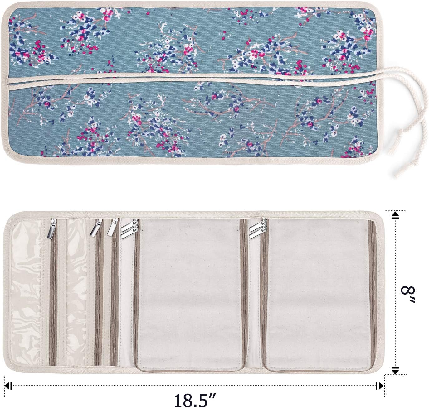 Teamoy Travel Jewelry Roll, Jewelry Storage Bag Organizer for Necklaces, Earrings, Bracelets, Rings, Brooches and More, Compact and Easy to Carry, Plum Flowers