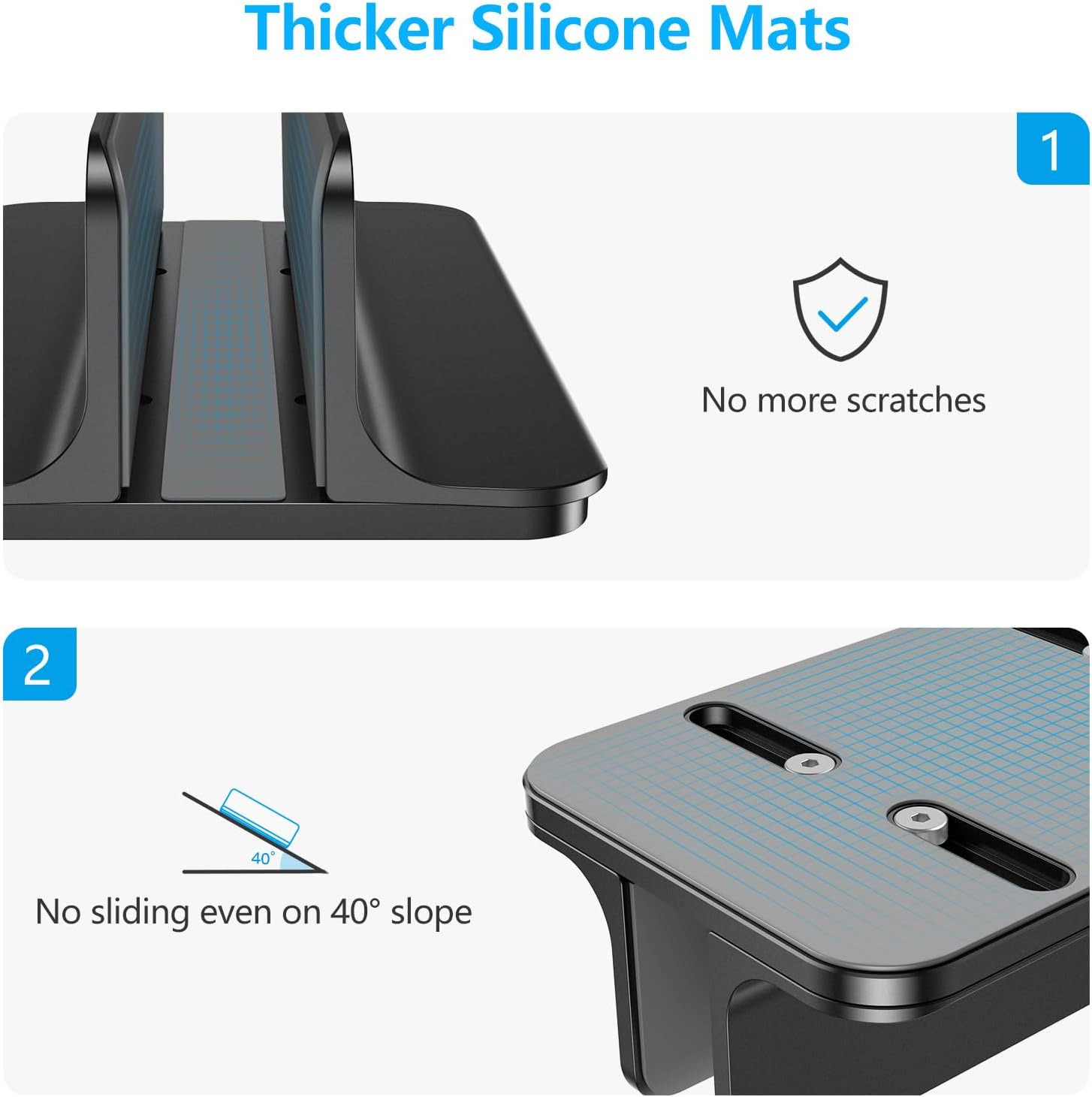 OMOTON Vertical Laptop Stand Holder, Desktop Aluminum Stand for MacBook with Adjustable Dock Size, Fits All MacBook, Surface, Chromebook and Gaming Laptops (Up to 17.3 inches),Black