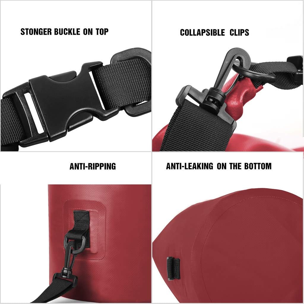 • VERSATILE AND DURABLE: You can leave the dry bag float on the water during river trip or other water sporting, no more worry about your items getting wet. The buckle and D-rings are upgraded with POM material, stronger than other traditional buckle. It will not break for frequent use