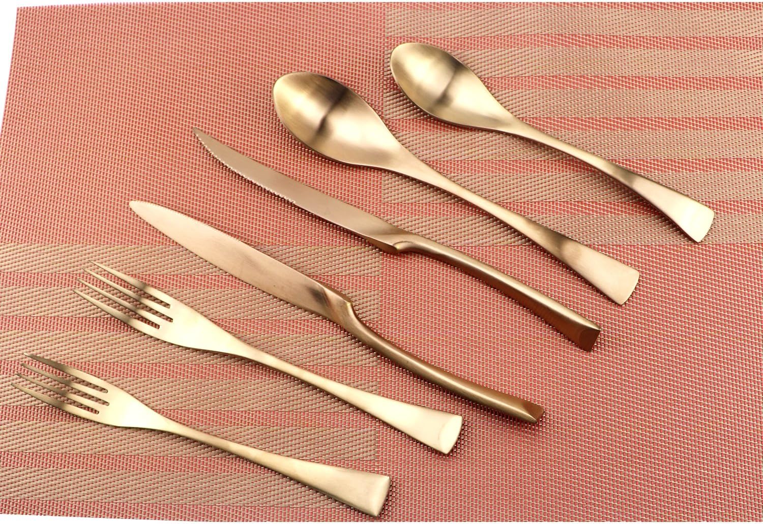 6-Piece Flatware Set,Extra Thick Heavy Duty - 18/10 Stainless Steel Cutlery Sets,High Matte Finish Rose Gold Flatware Sets Service for 1,Multipurpose Use for Home,Kitchen Utensil Sets