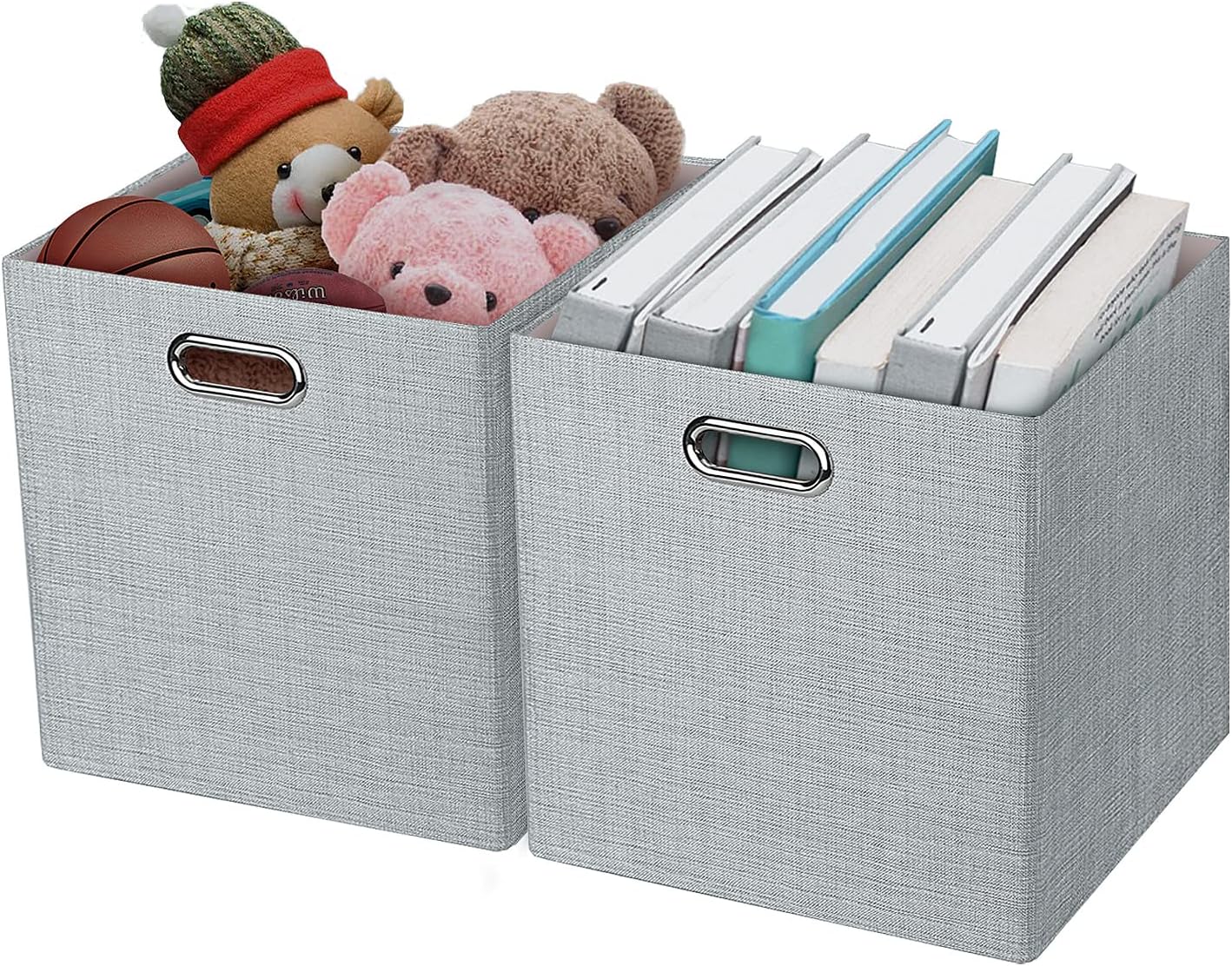 Thicker Fabric Storage Cubes 13 inch Collapsible Storage Bins for Organization, Cubby Storage Boxes for Organizing Shelf Cabinet Bookcase, 2pcs, Sliver Grey