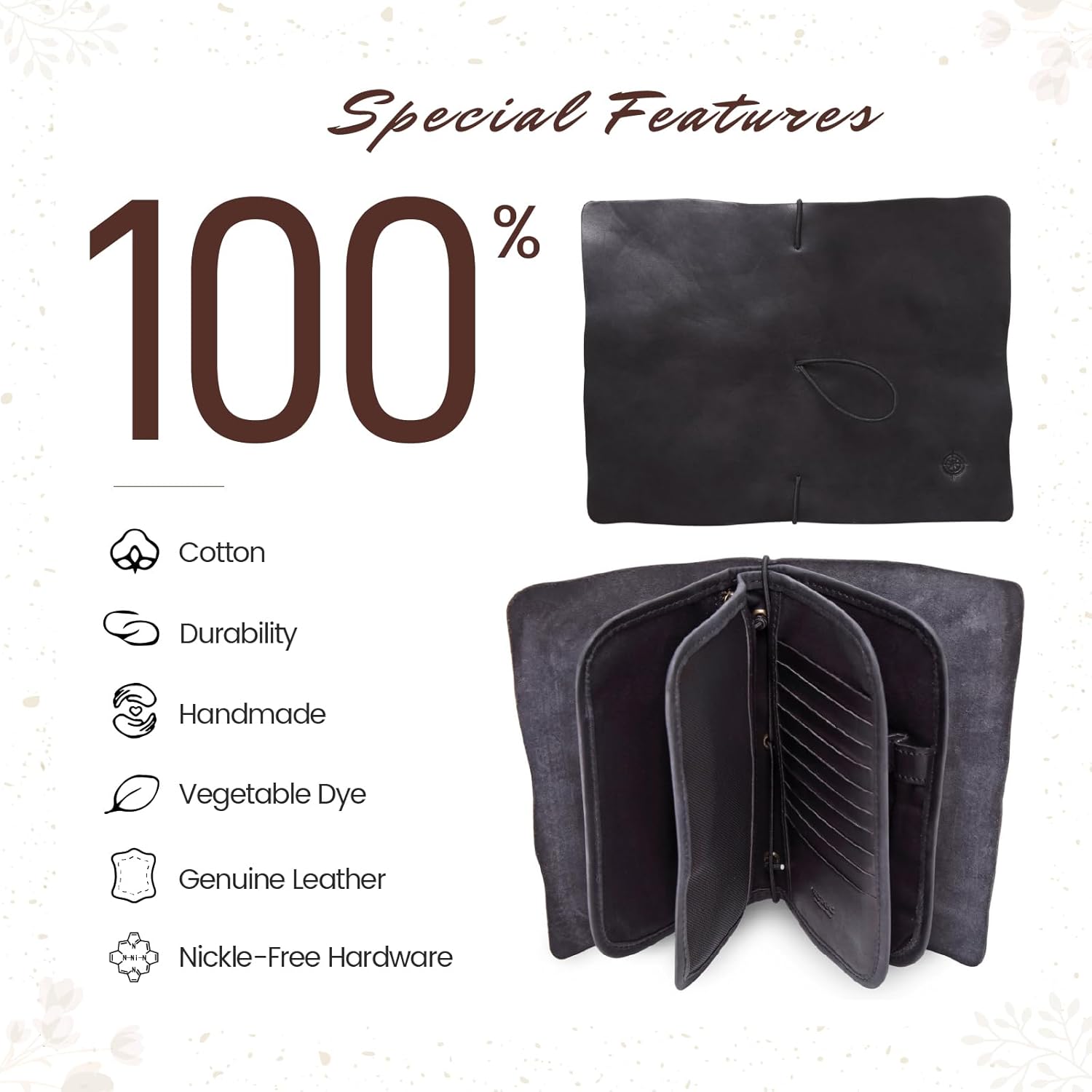 - Built to Last: Made with 100% cowhide leather that is soft, flexible, and uniquely ages during use; The elastic band makes it easy to open and find what you need, perfect for shopping