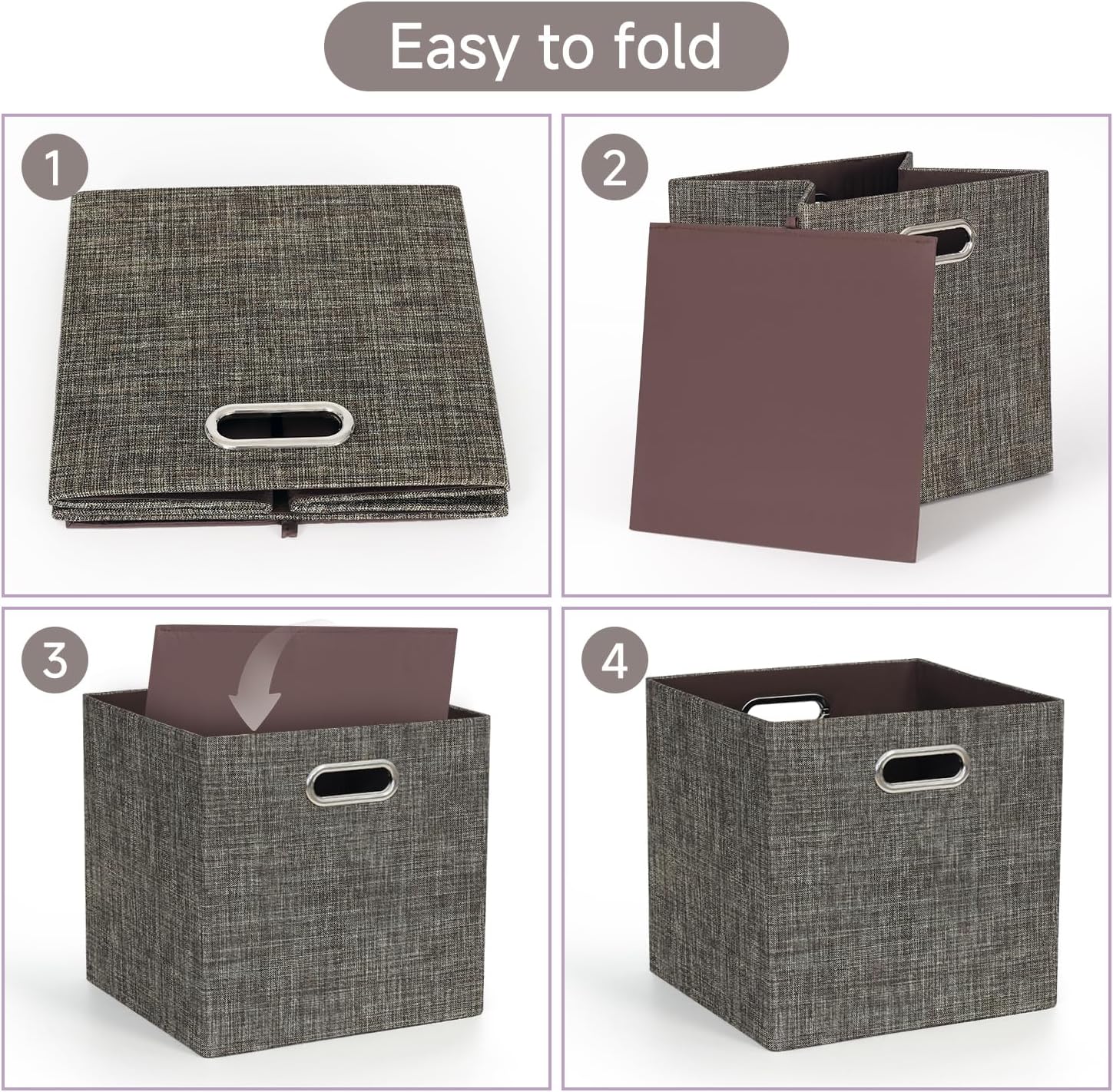 Posprica Storage Basket Bins,13×13 Foldable Storage Boxes Containers for Closet Organizer Shelf Cabinet Bookcase,Thick Fabric Drawer with Shimmer,4pcs,Brown