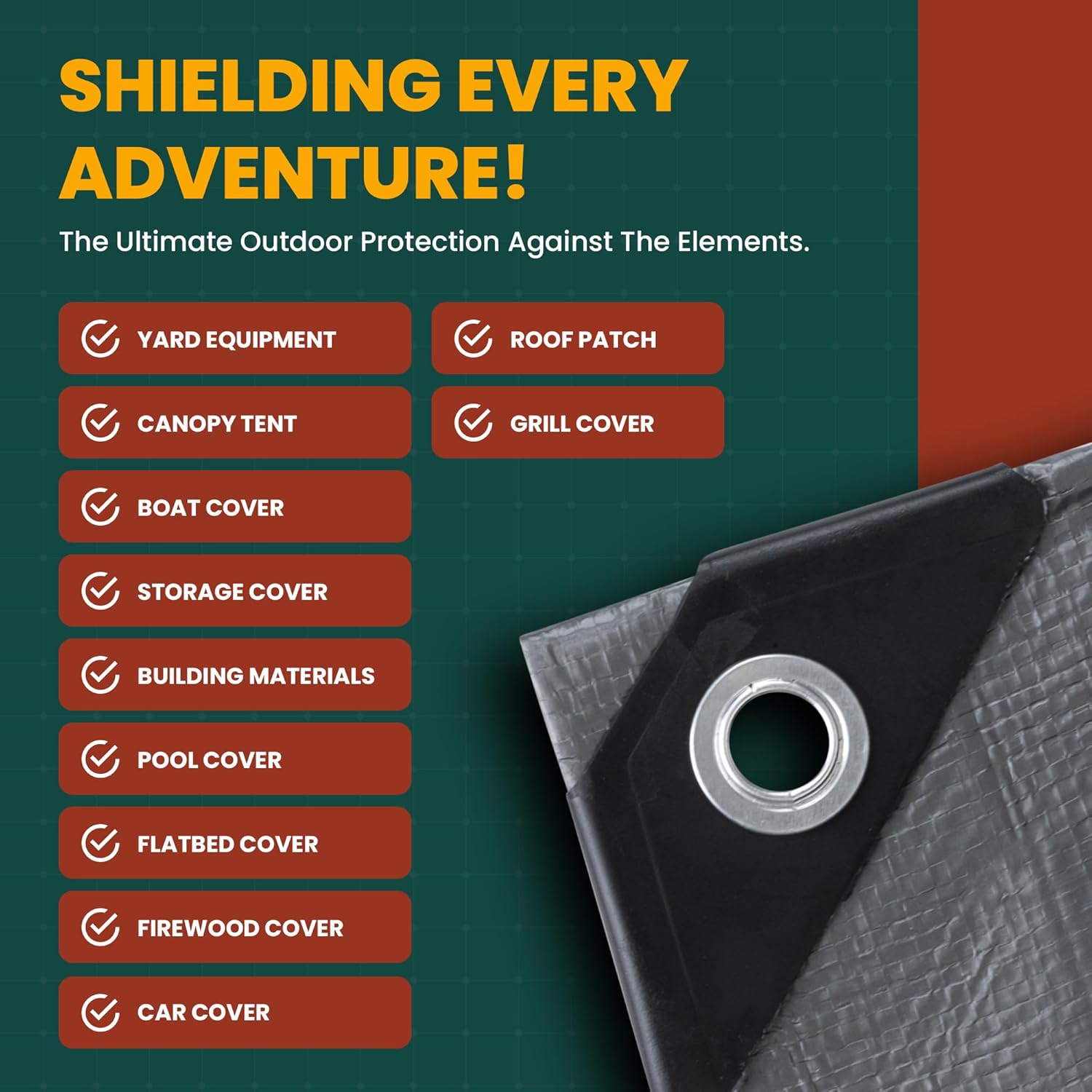 - Multipurpose Use - This rain tarp is also suitable for more personal applications where commercial quality protection is needed! Cover cars, motorcycles, grills, tables, broken roofing or even use as a camping ground sheet.