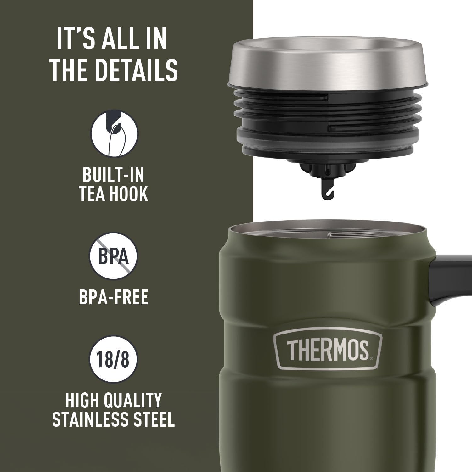 THERMOS Stainless King Vacuum-Insulated Travel Mug, 16 Ounce, Army Green