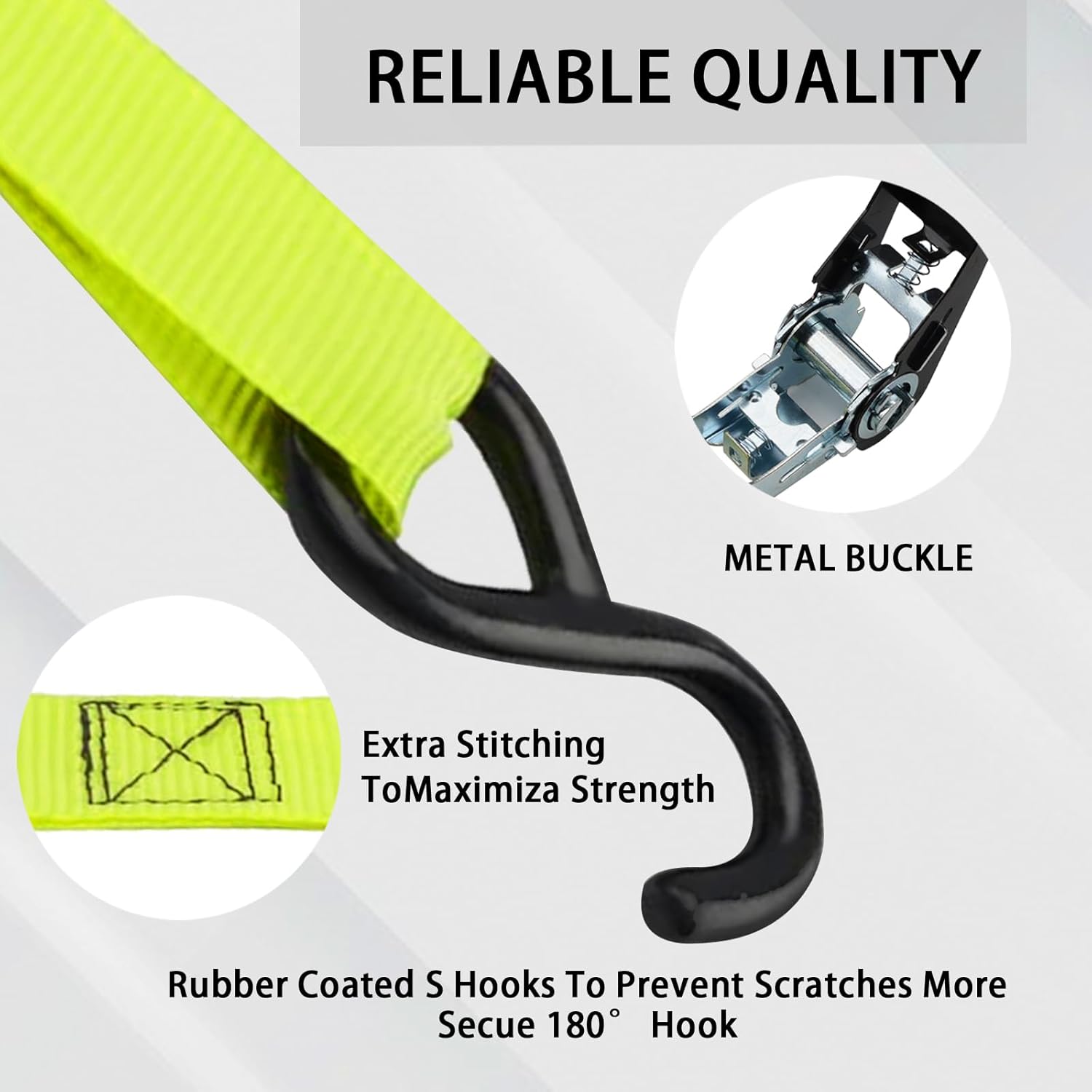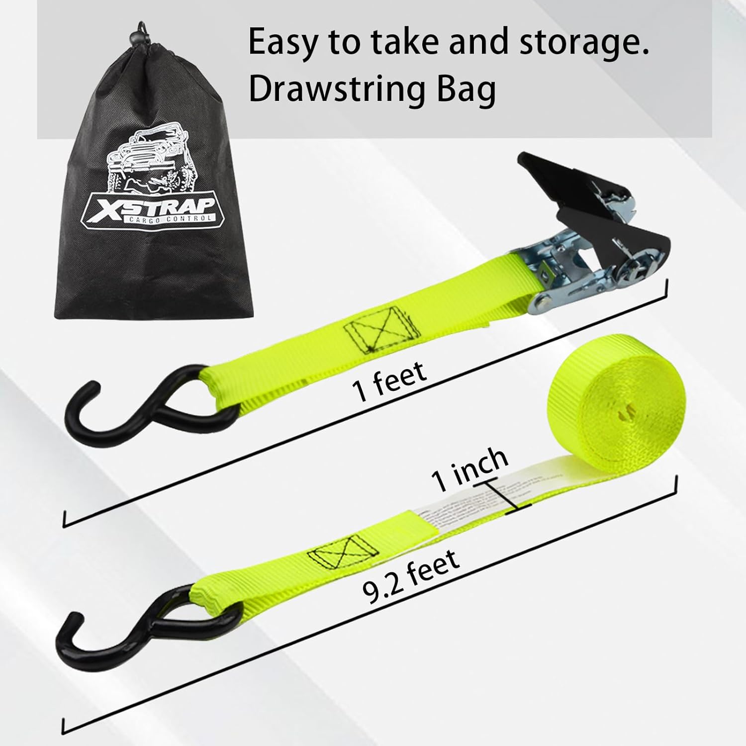 XSTRAP STANDARD Ratchet Tie Down Straps 4 Pk 10 Ft- 300 Lbs Load Cap- 900 Lbs Break Strength-Cargo Straps for UTV, ATV, Pickup,Truck, Moving Appliances, Lawn Equipment, Yellow