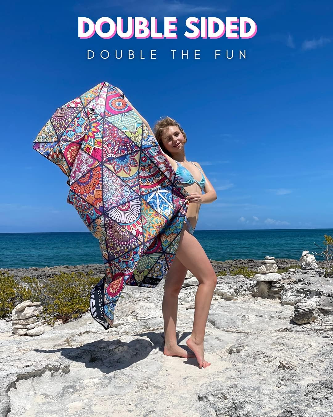 - TWICE THE FUN - The beach towel features a vibrant, double-sided design, adding a touch of style to your beach accessories or cruise ship essentials. Enjoy the beach with these stunning fast drying, lightweight, travel towels.