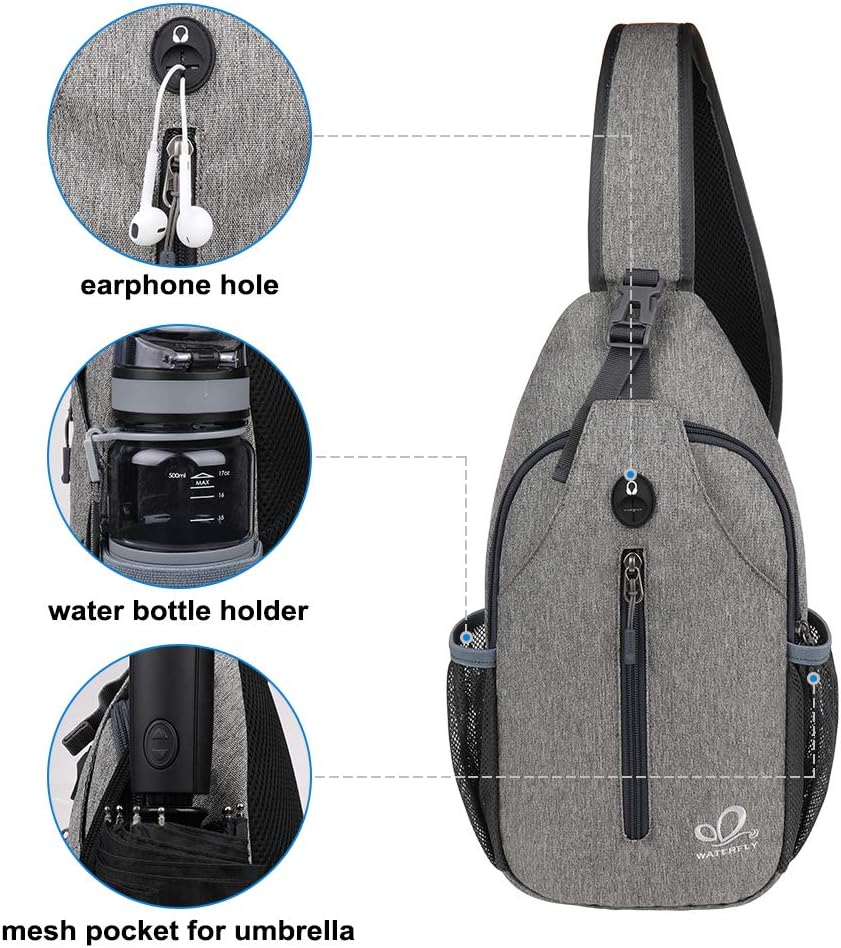 WATERFLY Crossbody Sling Backpack Sling Bag Travel Hiking Chest Bag Daypack