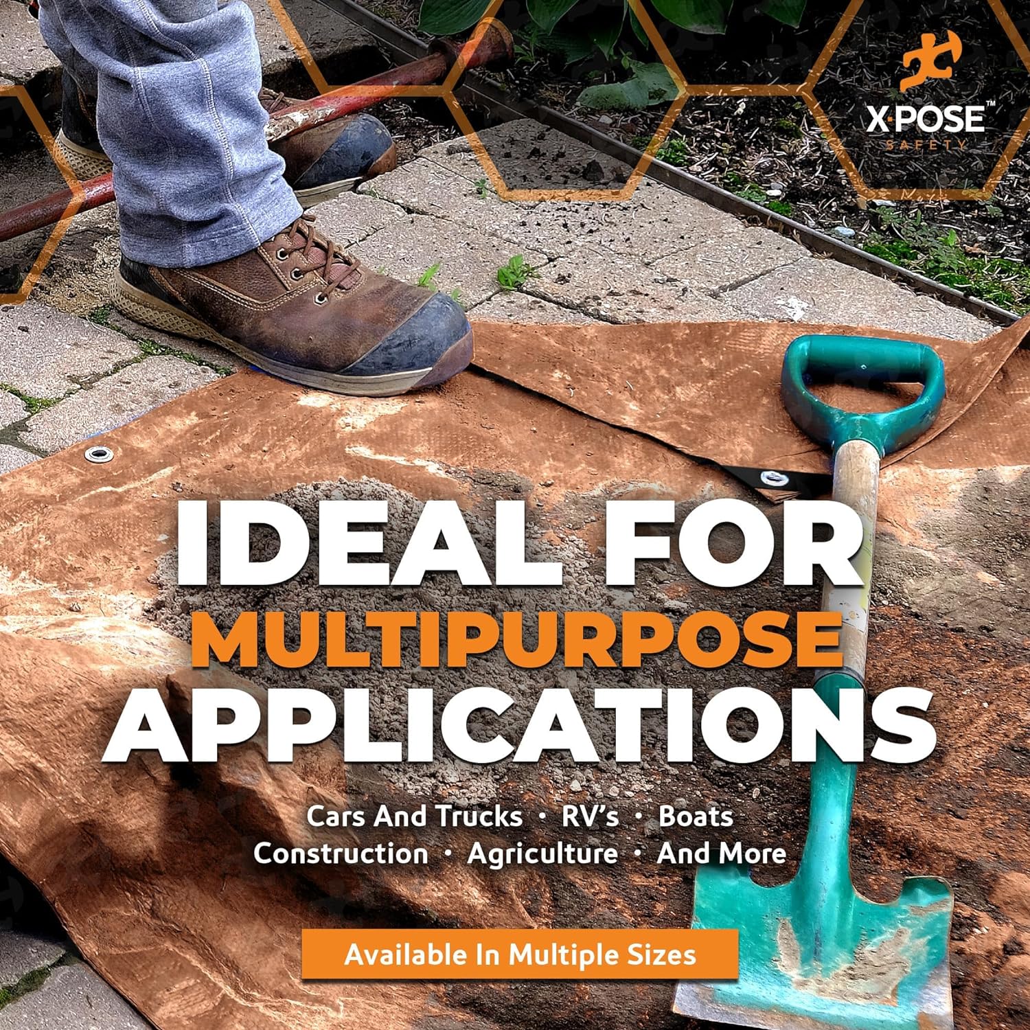 Multipurpose Protective Cover Brown Poly Tarp 5' x 7' - Durable, Water Resistant, Weather Resistant - 5 Mil Thick Polyethylene - by Xpose Safety