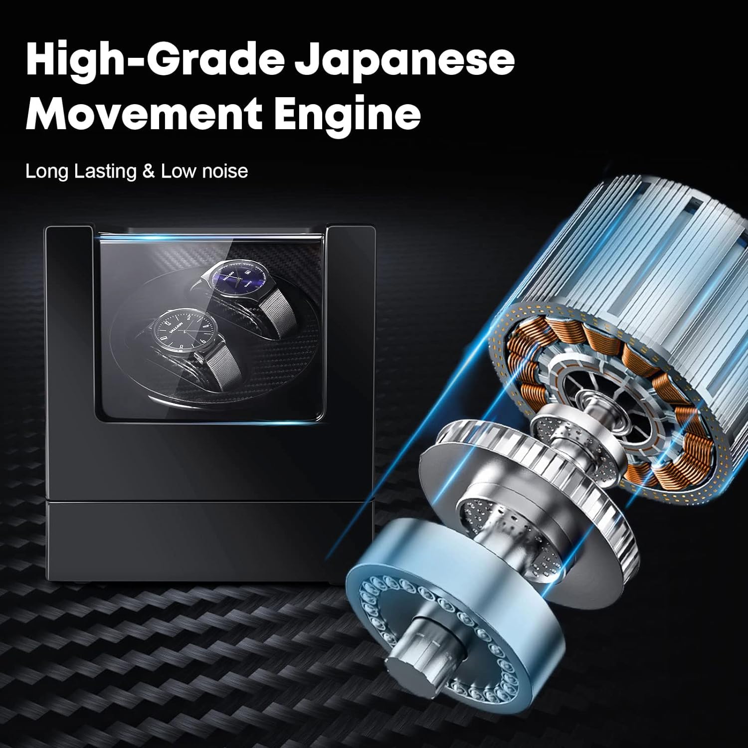 Uten Automatic Double Watch Winder Box, Luxury Wooden Storage Case for Mechanical Watch Winder with Quiet Motor 5 Rotation Mode, Black.