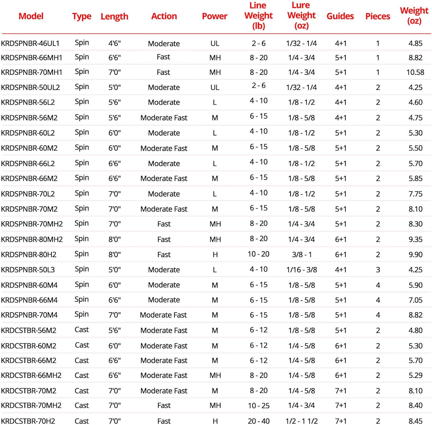 - 24 Different Spinning and Casting Rod Models – The KastKing Brutus fishing rods are available in over 20 combinations of power, action, length and number of pieces. There’s a Brutus rod designed for almost any freshwater or saltwater fishing adventure. Use it as a bass fishing rod, walleye fishing rod, salmon fishing rod, or catfishing rod. There are 3 & 4-pc models that make great travel or pack rods so you are never without an easy to pack travel rod.