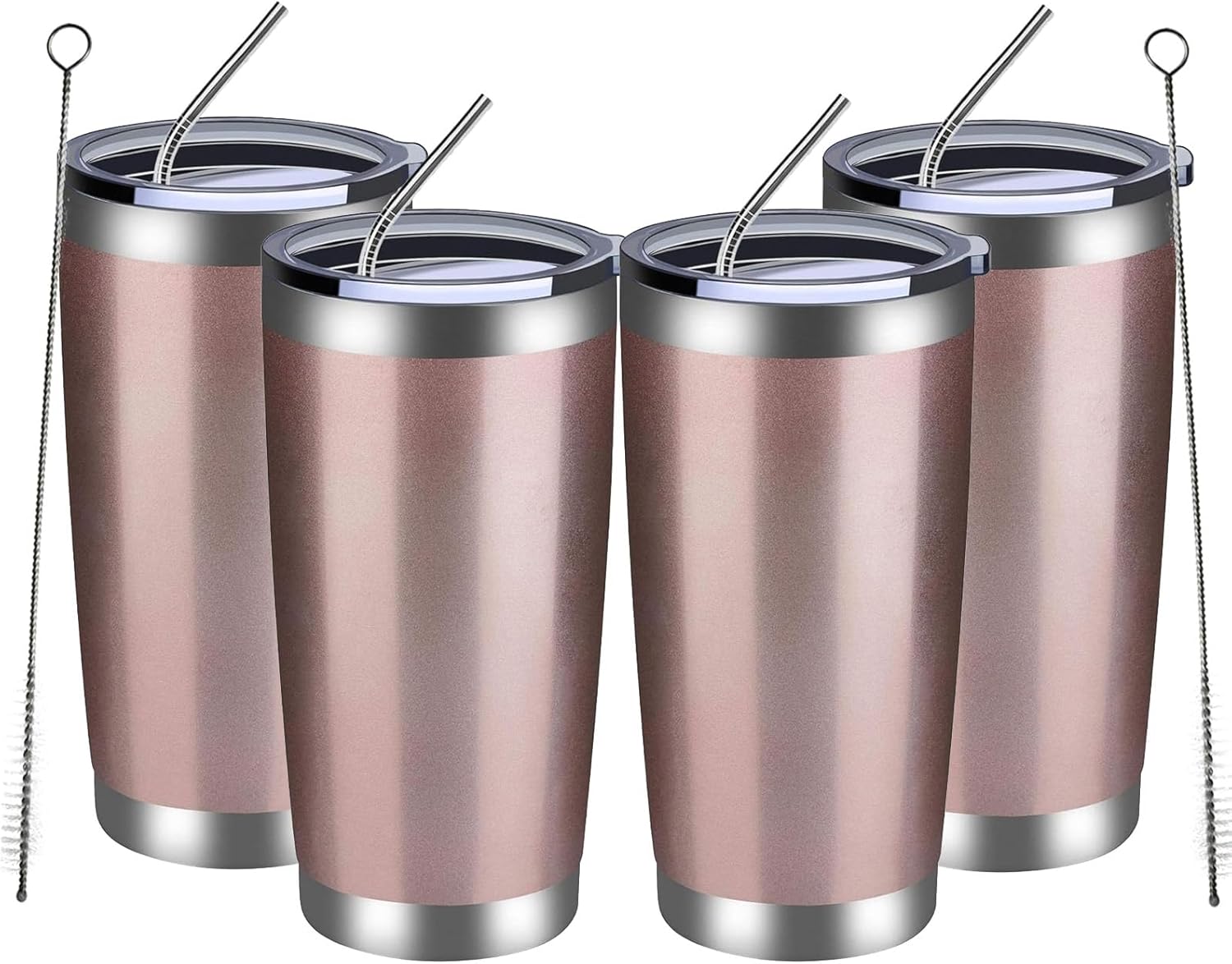 - [Package included]4*20 oz glitter tumbler,4*splash proof cover with hole, 4*bent stainless steel straw, 2*straw brush