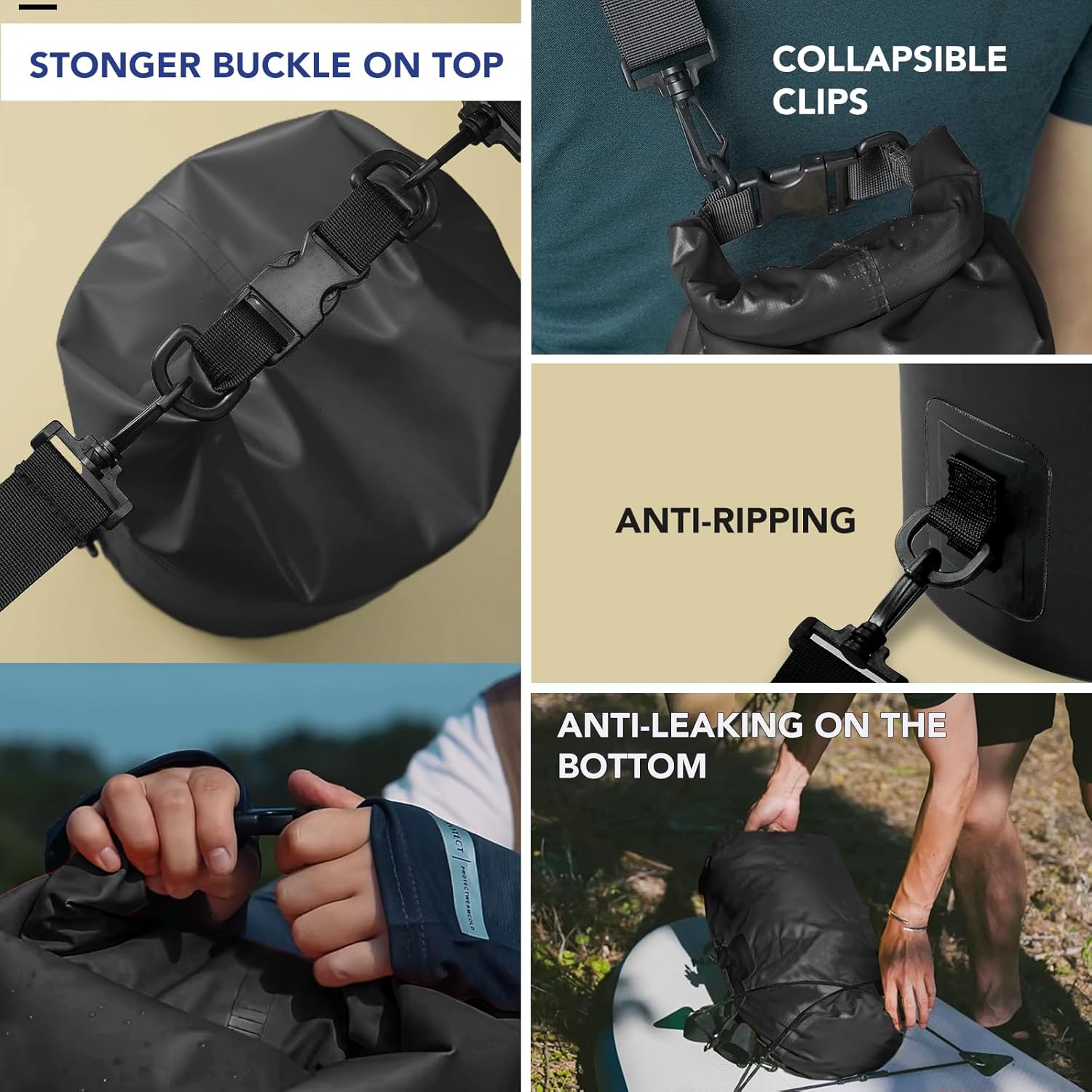 - VERSATILE AND DURABLE: You can leave the dry bag float on the water during river trip or other water sporting, no more worry about your items getting wet. The buckle and D-rings are upgraded with POM material, stronger than other traditional buckle