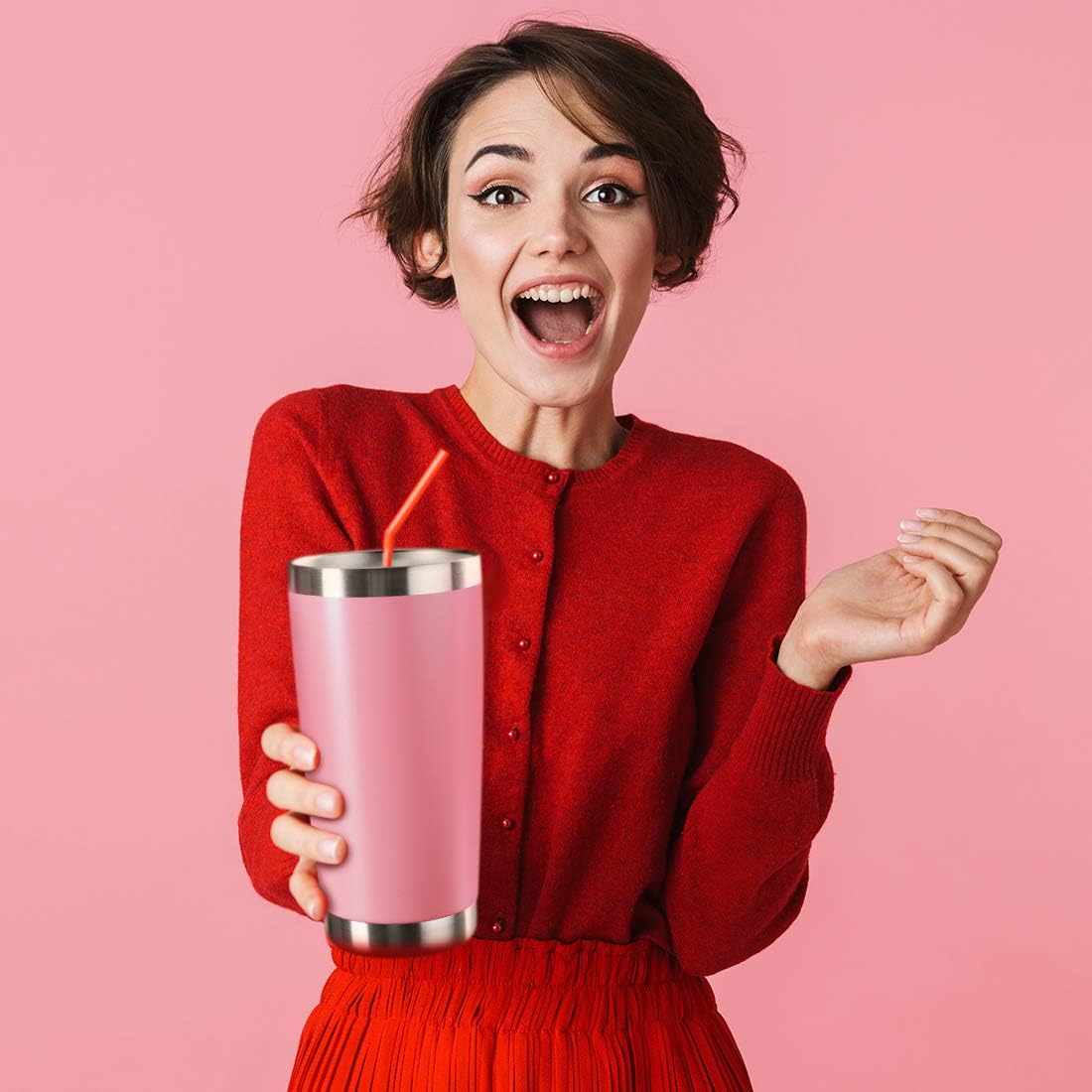 20oz Tumbler Stainless Steel Vacuum Insulated Mug with Lid, Double Wall Travel Mug, Durable Powder Coated Coffee Cup, Suitable for Ice Drinks and Hot Beverage (Pink 12pack)