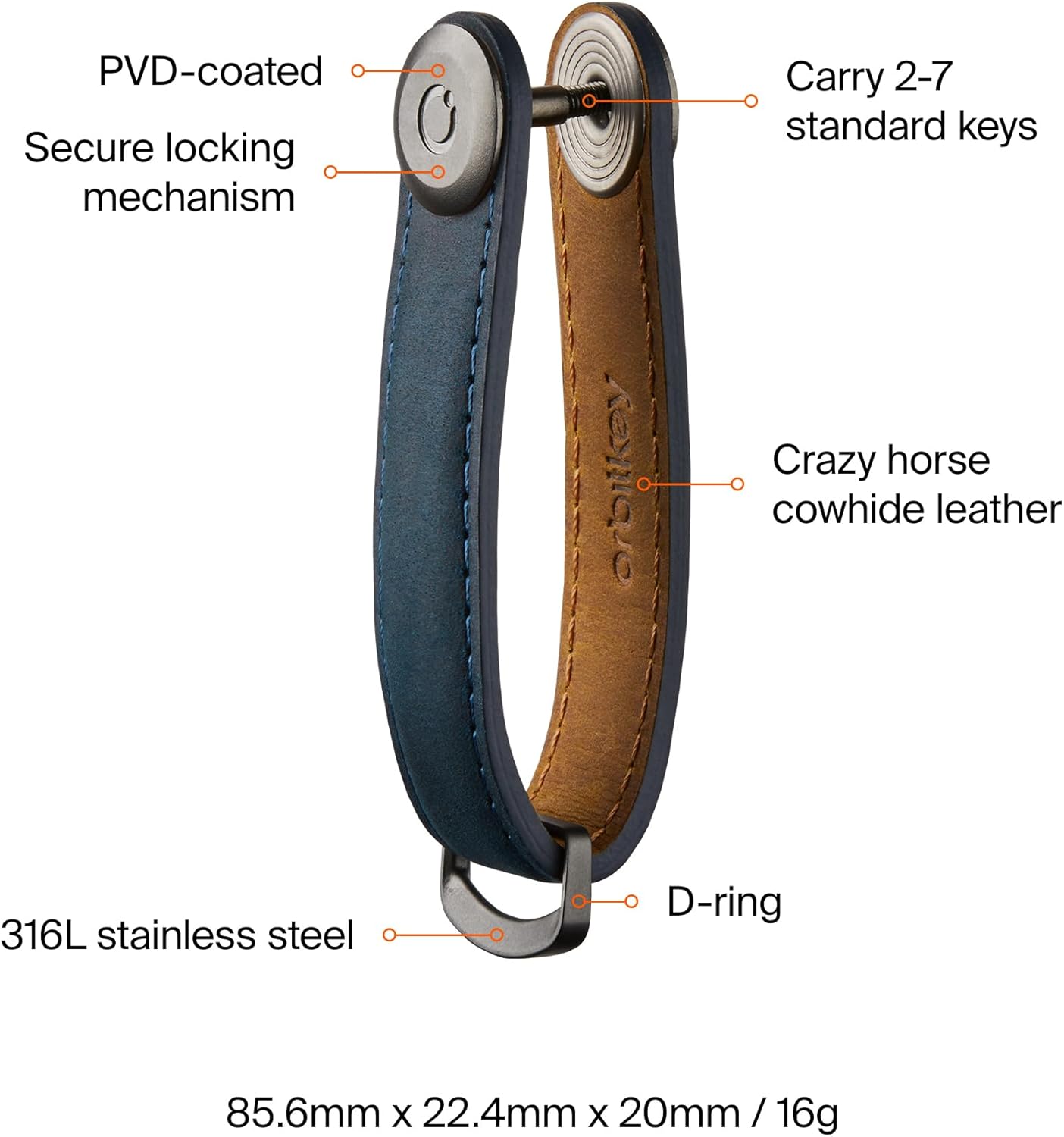 Orbitkey Crazy Horse Leather Key Organizer | Quiet Profile | Holds up to 7 Keys