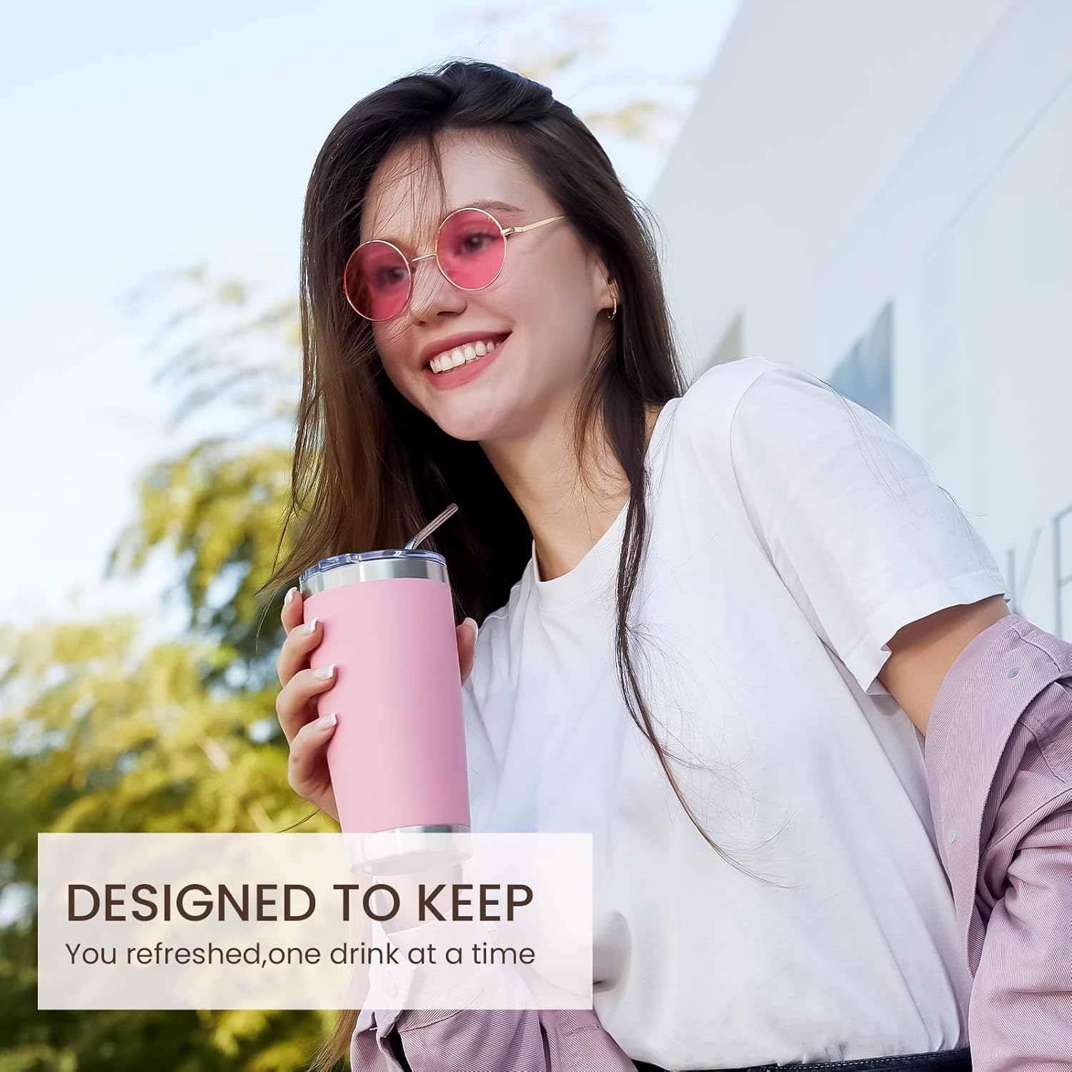 MEWAY 20oz Tumbler 12 Pack Double Wall Vacuum Insulated Travel Mug Bulk, Stainless Steel Tumblers with Lid and Straw, Durable Powder Coated Coffee Cups for Cold & Hot Drinks (Pink, 12)