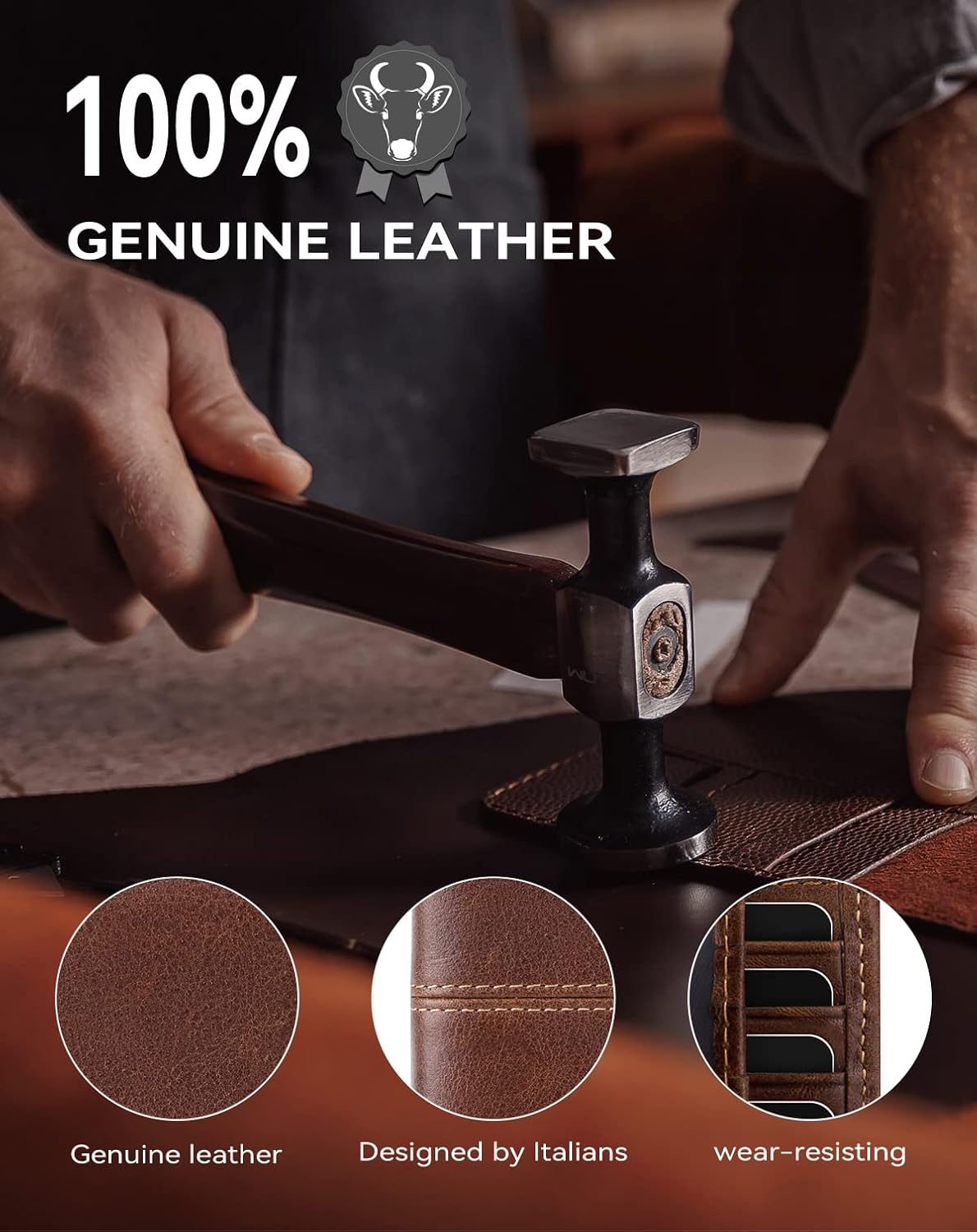 - Genuine Leather: Crafted from premium cowhide leather, our wallet is soft and smooth to touch. The exquisite stitching process and design give it a sophisticated look. Whether you're holding it in your hands or slipping it into your pocket, it feels comfortable natural without any bulk or discomfort