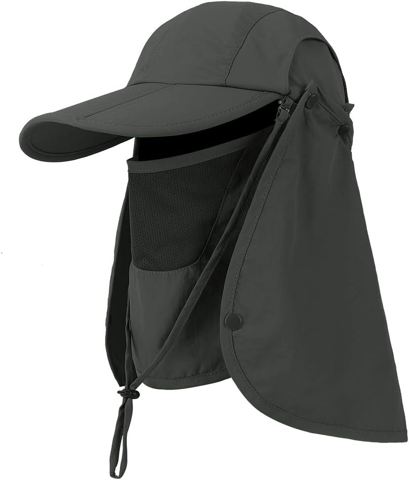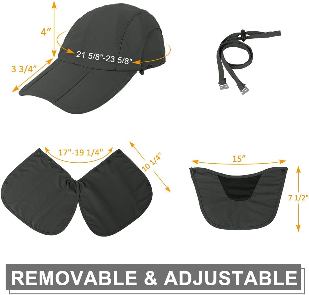 Foldable Sun Cap, Fishing Hats, UPF 50+ Protection Caps with Face Mask Neck Flap