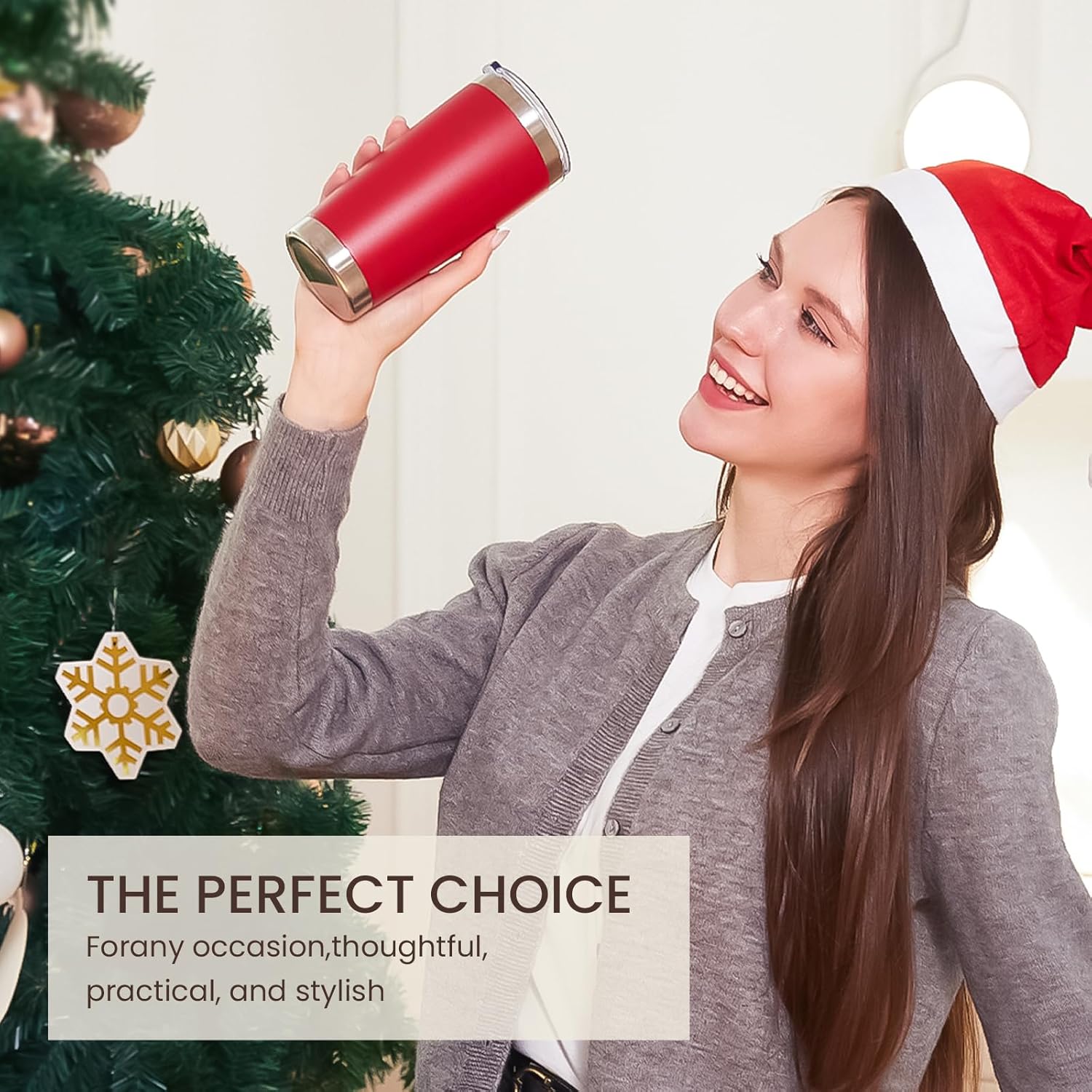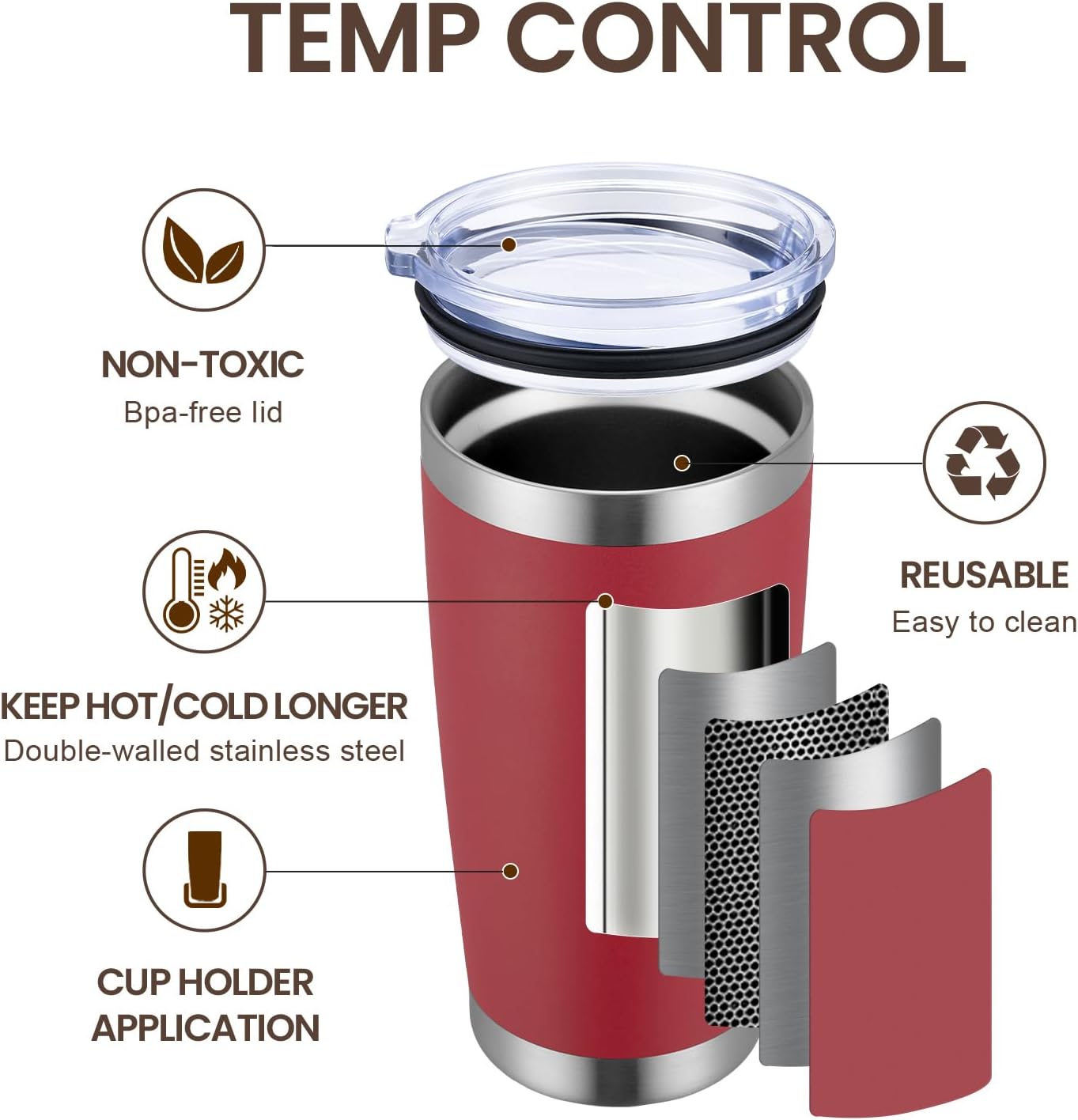 MEWAY 20oz Tumbler Double Wall Vacuum Insulated Travel Mug, Stainless Steel Tumblers with Lid and Straw, Powder Coated Coffee Cups for Cold & Hot Drinks (Red, Set of 1)