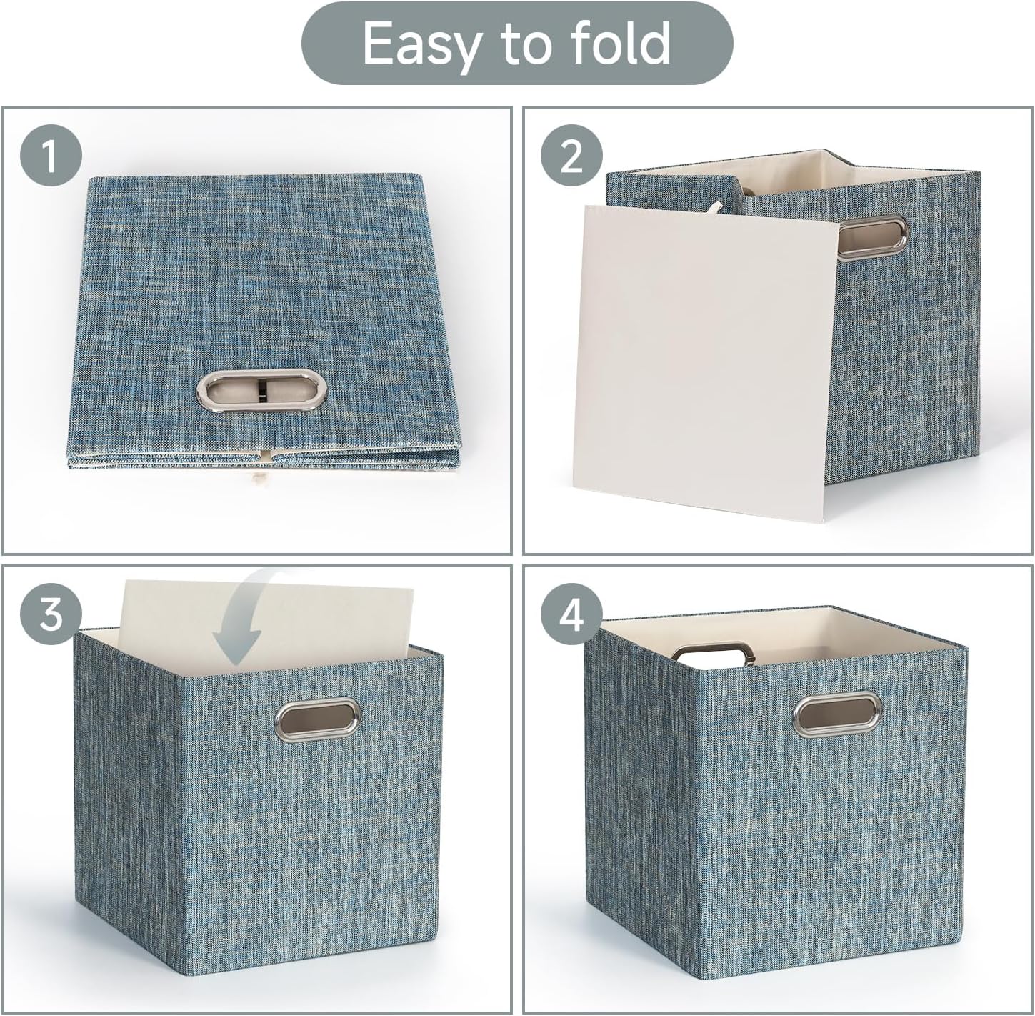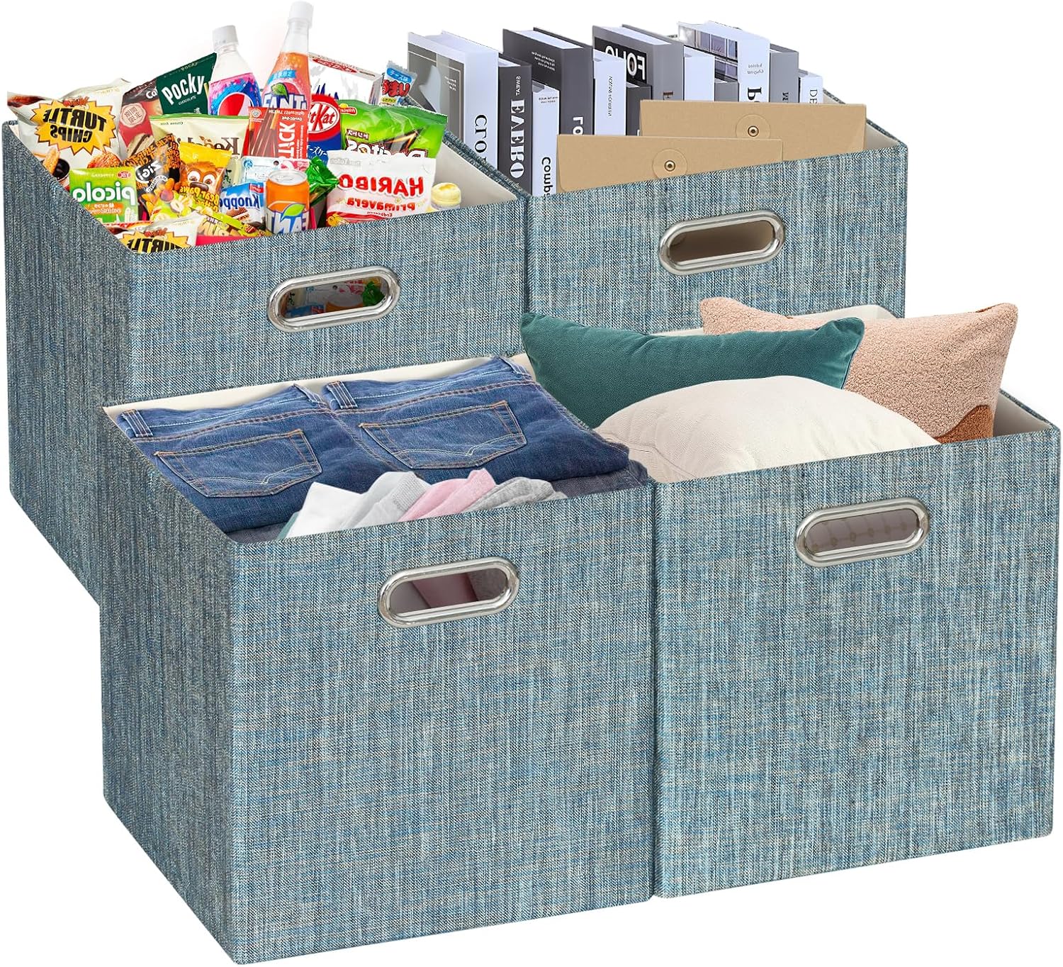 Posprica Storage Basket Bins,11×11×11 Foldable Storage Cube Boxes Fabric Drawer for Closet Shelf Cabinet Bookcase - Set of 4,Teal