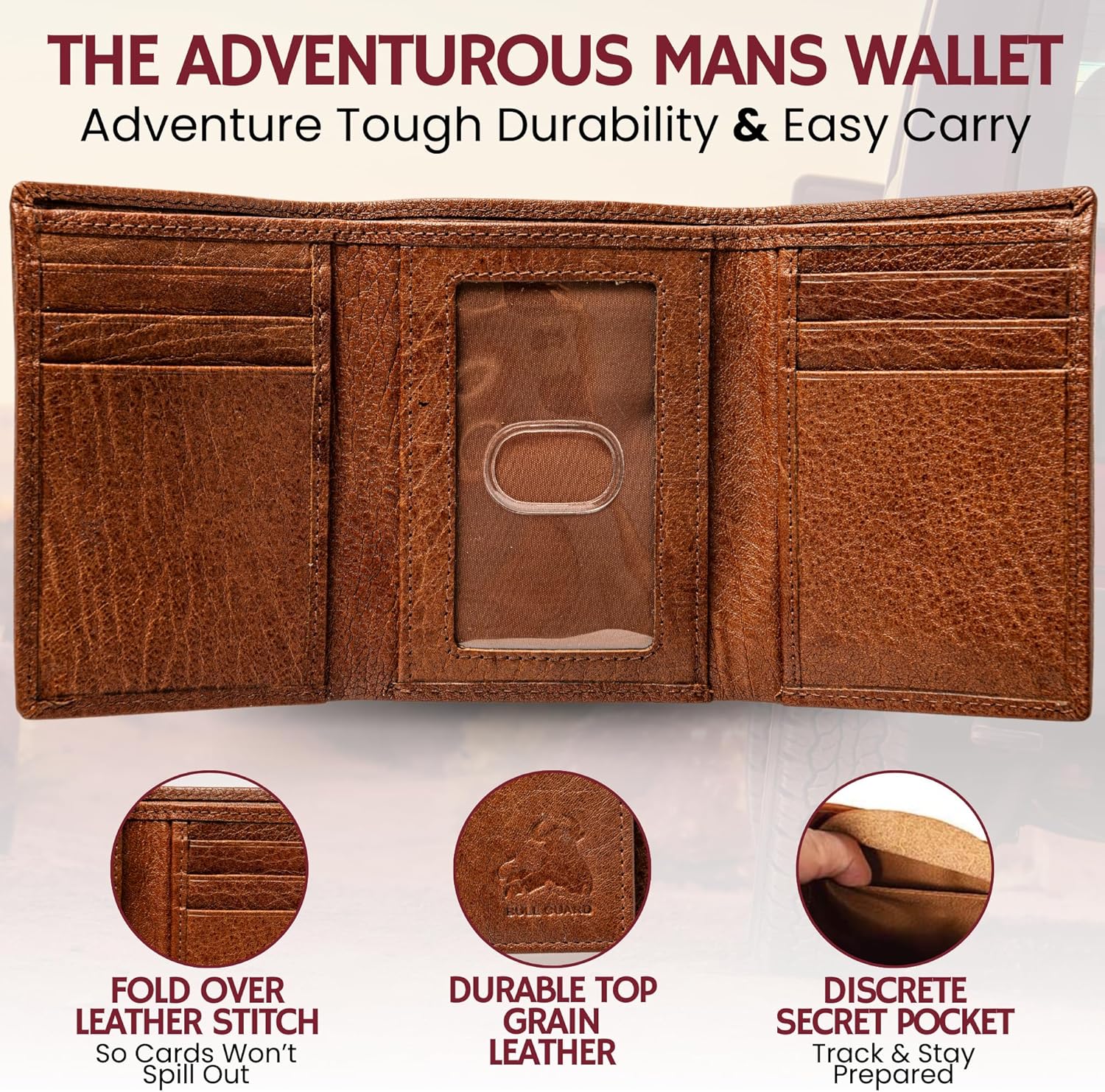 BULL GUARD Leather Trifold Wallets For Men with ID and RFID Blocking Great For Work, Sports, Outdoors