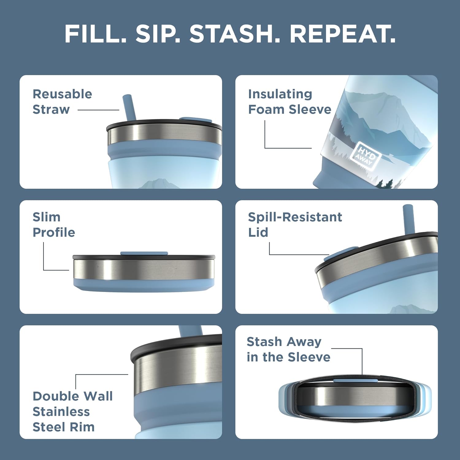 HYDAWAY 16oz Collapsible Tumbler - BPA-Free, Reusable Silicone Cup with Lid & Insulating Sleeve - Perfect for Coffee, Travel, and Everyday Use