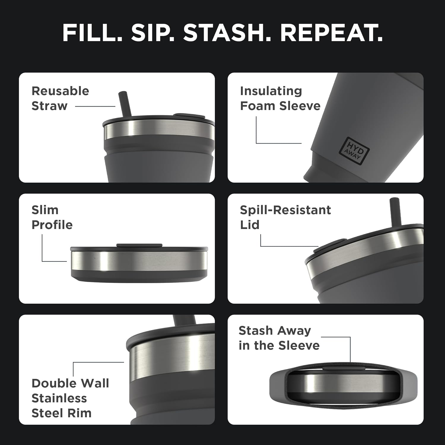 HYDAWAY 16oz Collapsible Tumbler - BPA-Free, Reusable Silicone Cup with Lid & Insulating Sleeve - Perfect for Coffee, Travel, and Everyday Use