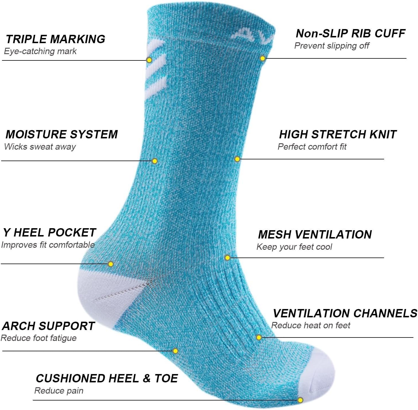 - Dri-Technology offer Breathable, moisture wicking fabric keep your feet dry with unique max ventilation, circular knit mesh channels engineered for good air ventilation and moisture control; Knitted moisture transport channel wicks sweat away from the body when you Sporting, avoid redness and odors, keep your feet cool