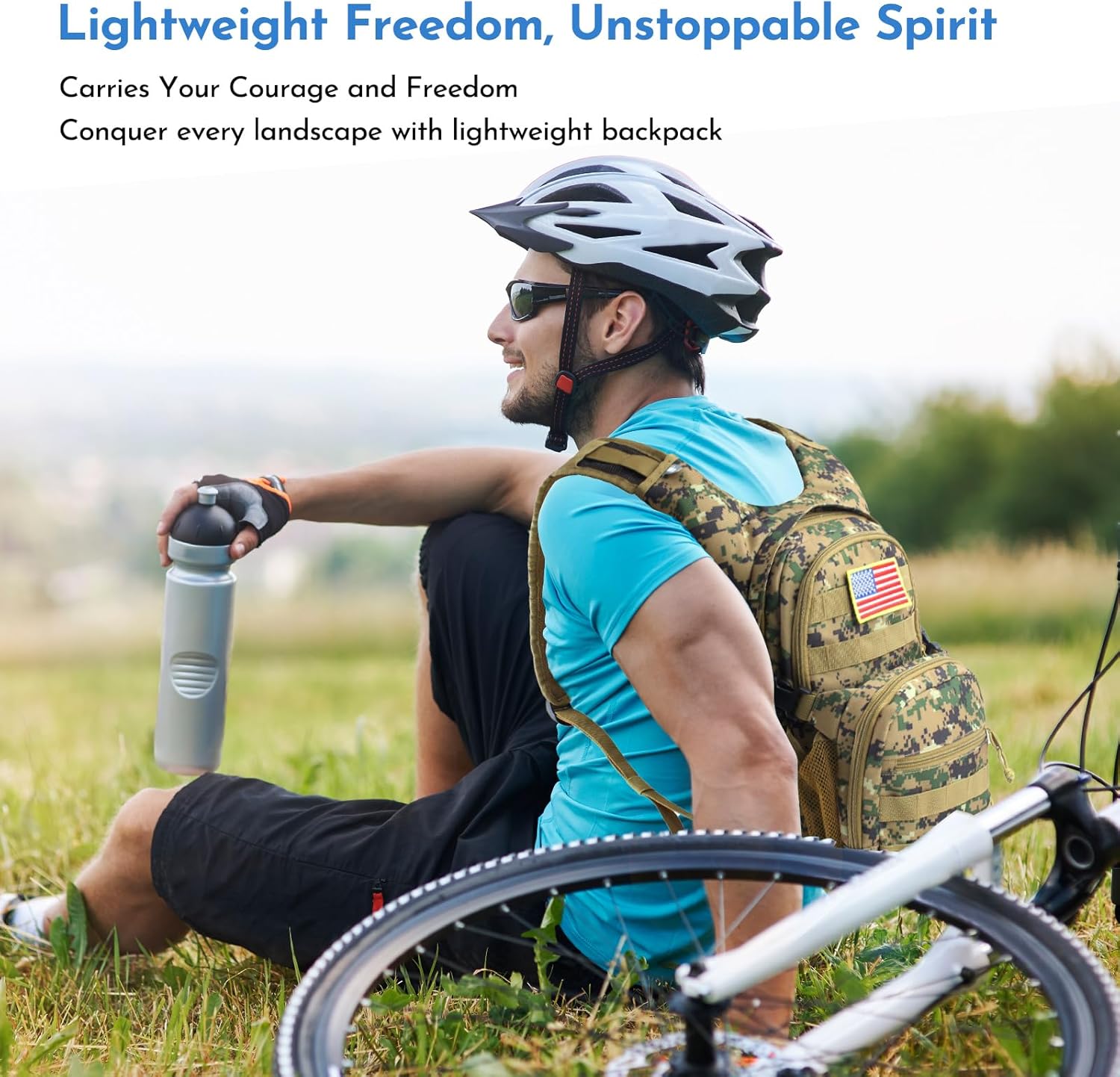 - 【Ultimate Tactical Hydration Backpack for Outdoor Adventures】Built with military-grade 600D ripstop nylon and MOLLE webbing straps, this rugged hydration pack survives intense hiking/camping trips. Features 9 tactical pockets (4 lockable zippered + 5 quick-access compartments) to organize gear, snacks, phones and hydration bladder. Includes BPA-free 2L water backpack reservoir with leakproof bite valve - perfect hydration solution for multi-hour treks