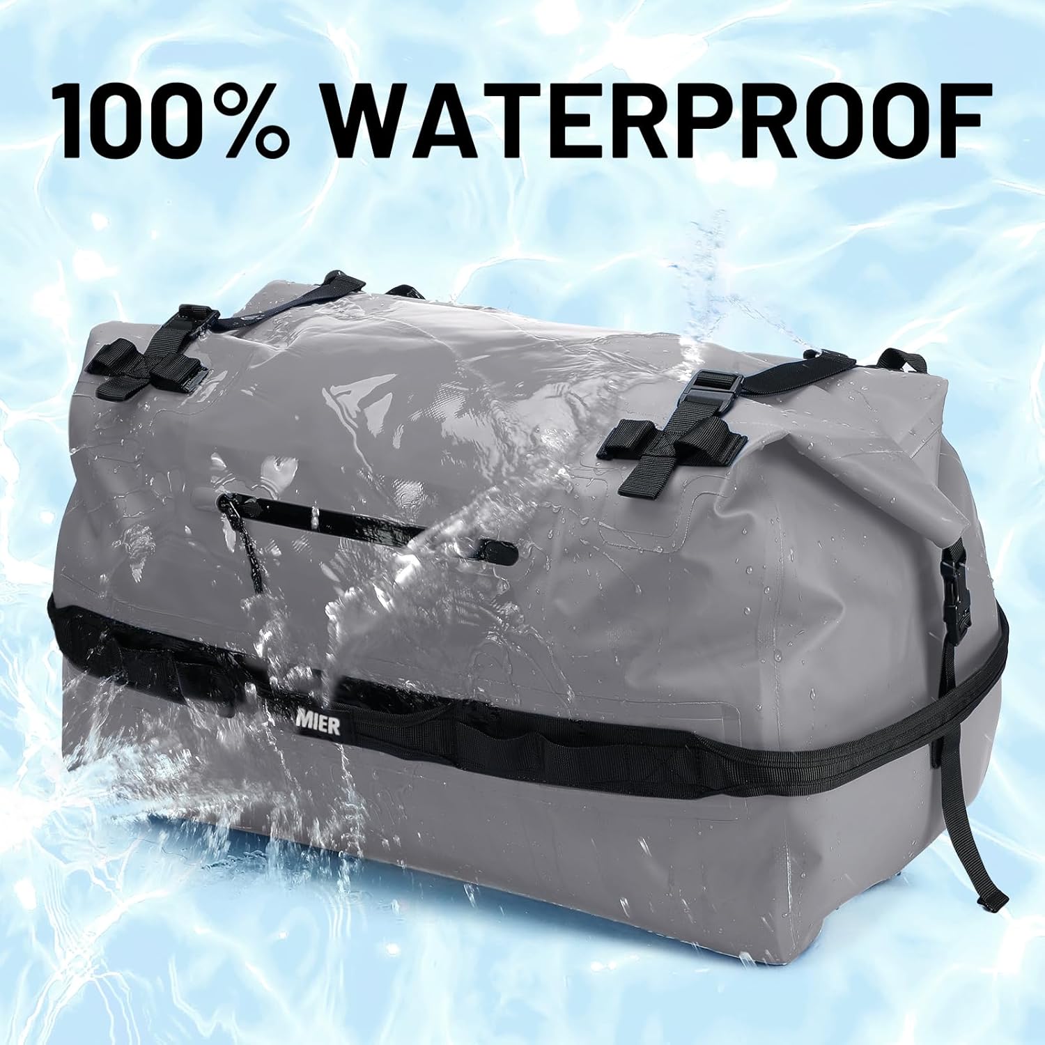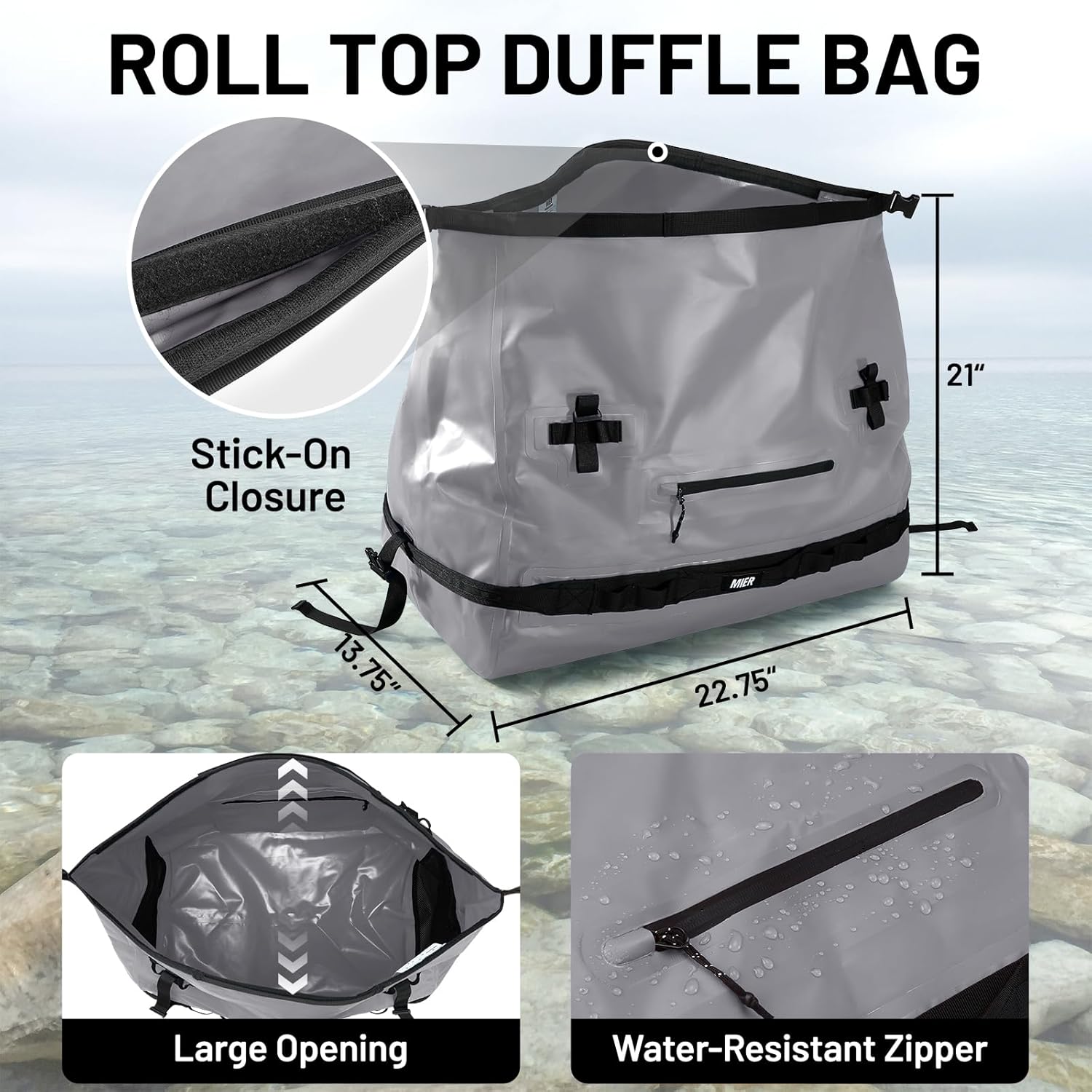 - 100% Waterproof & Sandproof --- MIER dry duffle backpack is made of abrasion-resistant, water-repellent tarpaulin and has fully welded seams for absolute protection. Its wide hook-and-loop-secured roll-top opening enables quick access. To seal: simply fold the top down 3 times and secure with side clips for a snug, compressed, weatherproof fit