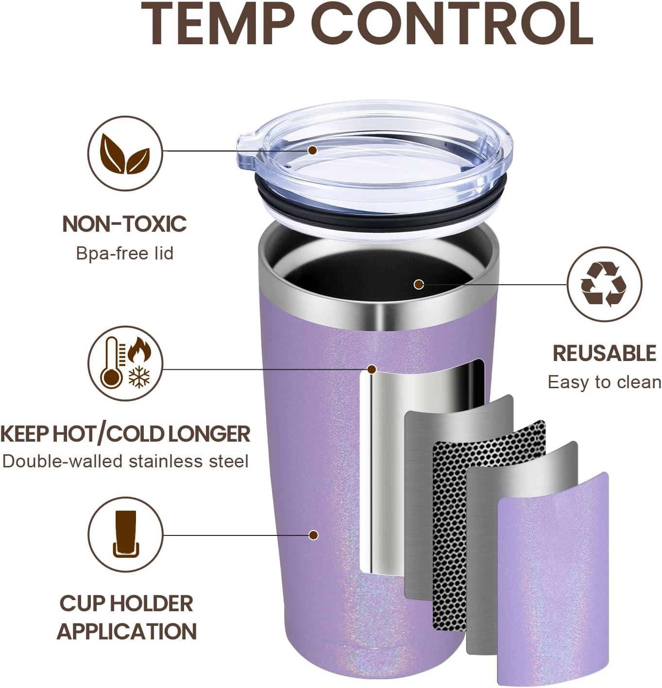 - [Package included]1*20 oz glitter tumbler,1*splash proof cover with hole, 1*bend stainless steel straw,1*straw brush