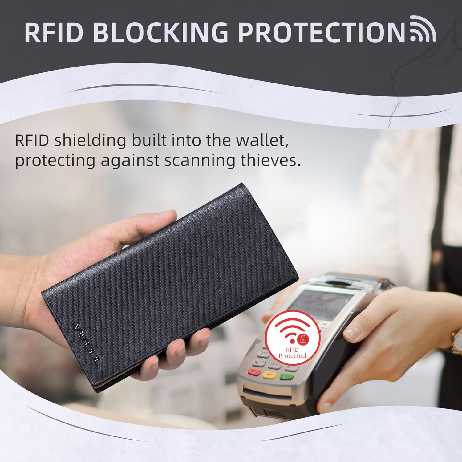 - Rfid Blocking Protection: RFID shielding built into the wallet, ensuring the security of your personal information; RFID technology to effectively protect your personal information; Protect your important credit card information from criminals