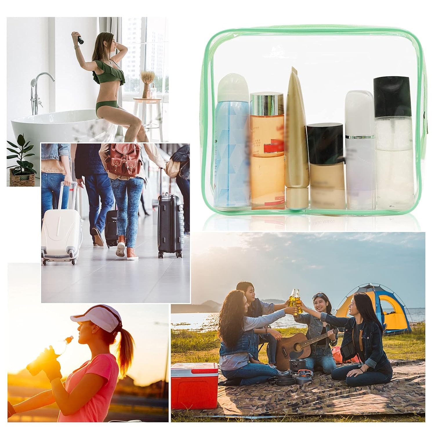 APREUTY Clear Makeup Bags, TSA Approved 6 Pcs Cosmetic Makeup Bags Set Clear PVC with Zipper Handle Portable Travel Luggage Pouch Airport Airline Vacation Organization (Green)