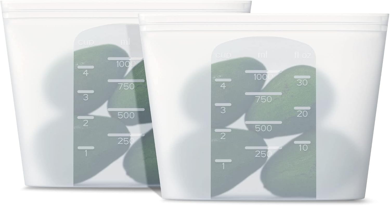 Reusable Silicone Food Storage Bag, for Microwave, Oven, Fridge, Freezer & Sous Vide Zip Sealed Containers (2 Middle size 32oz 1000ml)…