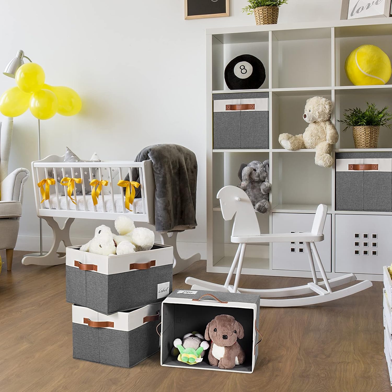 - 【LARGE STORAGE BINS WITH LIDS】Set of 3, dimensions (each): 15(L) x 11(W) x 9.7(H) inch, storage capacity of the extra large storage bins with lids are 26L, which can hold a large number of items to organize your home or office. Each fabric storage baskets with Lids has a eye-catching label to classify the stored items. The perfect size and neutral colors of the storage bins with lids match most of your home decorations and styles while keeping your home organized