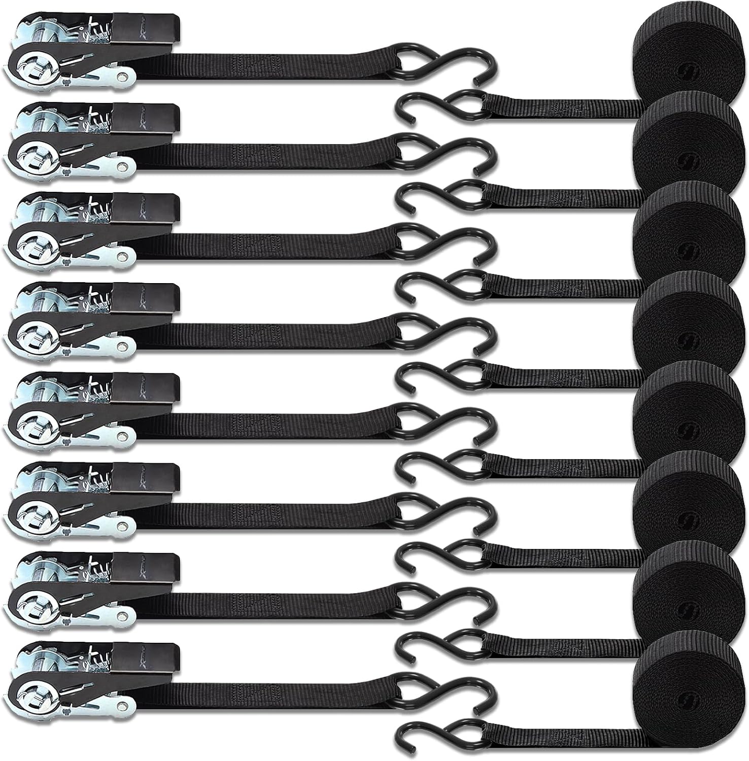 XSTRAP STANDARD Ratchet Tie Down Straps 8PK 1'' x 10 ft - 900 LB Break Strength Cargo Straps for Moving Appliances, Lawn Equipment, Motorcycle (Black)