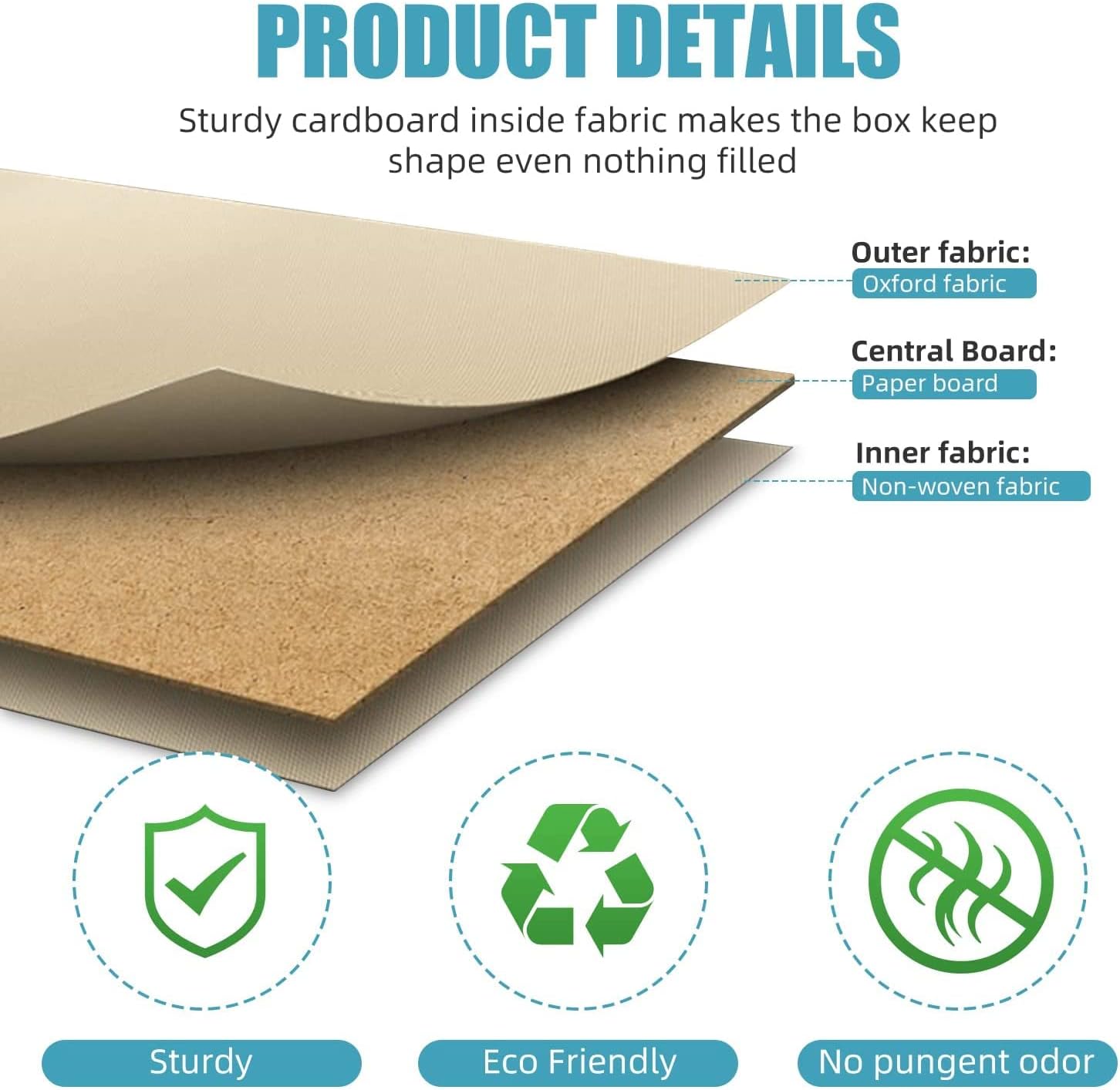 - 【Premium Quality】 -These fabric storage bins with lids are made of durable and breathable linen fabric with the high quality cardboard on the sides and bottom. The fabric is eco-friendly and durable, with no odor. The inner 2.2mm thick cardboard maintains fabric storage box shape and structural integrity. Both handles are sewn through cardboard to make this decorative storage boxes rigid enough to hold a heavy load.