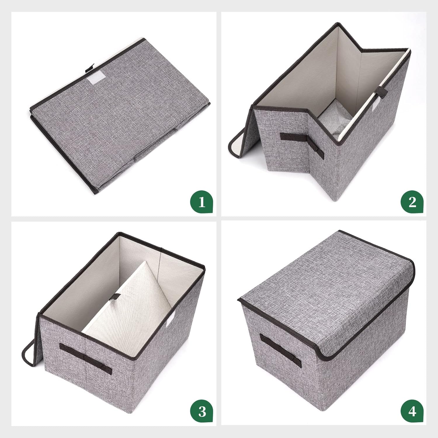- 【Premium Quality】 - These fabric storage bins with lids are made of durable and breathable linen fabric with the high quality cardboard on the sides and bottom. The fabric is eco-friendly and durable, with no odor. The inner 2.2mm thick cardboard maintains fabric storage box shape and structural integrity. Both handles are sewn through cardboard to make this decorative storage boxes rigid enough to hold a heavy load.