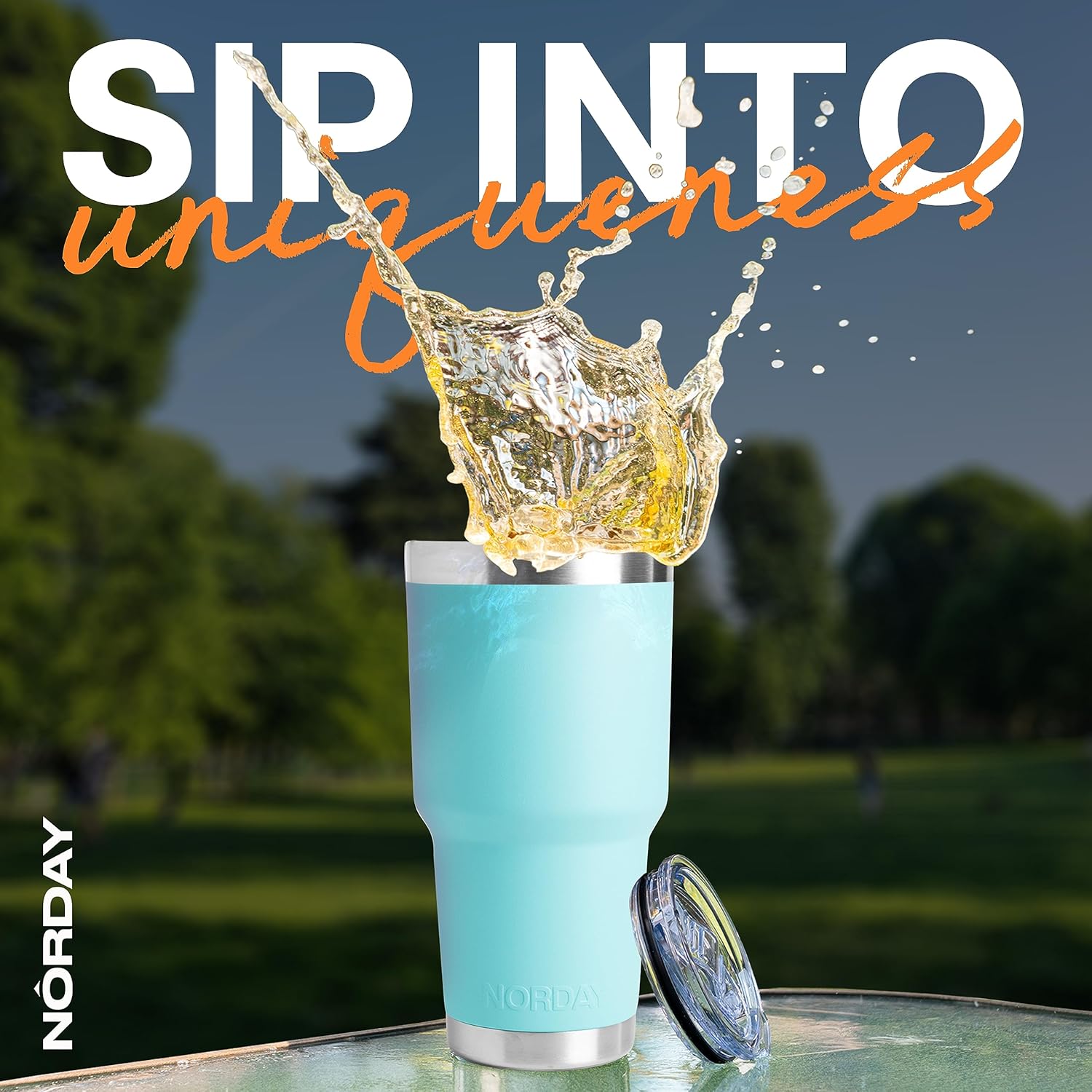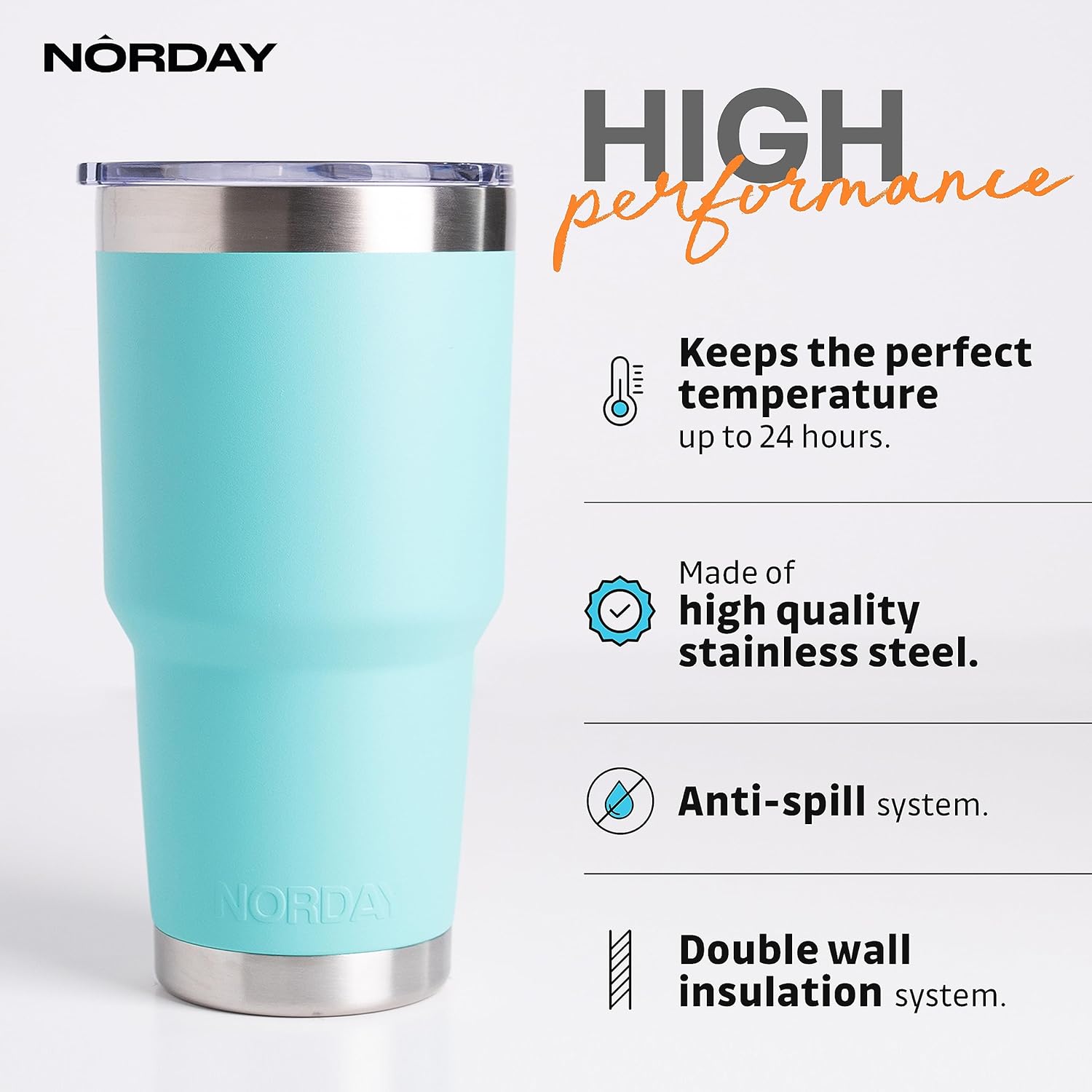 NORDAY | Tumbler with Lid - 30oz - Aqua Insulated Tumbler - Stainless Steel Tumblers - Double Wall Vacuum Insulated Travel Coffee Mug for Car Cup Holder - Keeps Temperature for 24hr - Anti Spill Lid