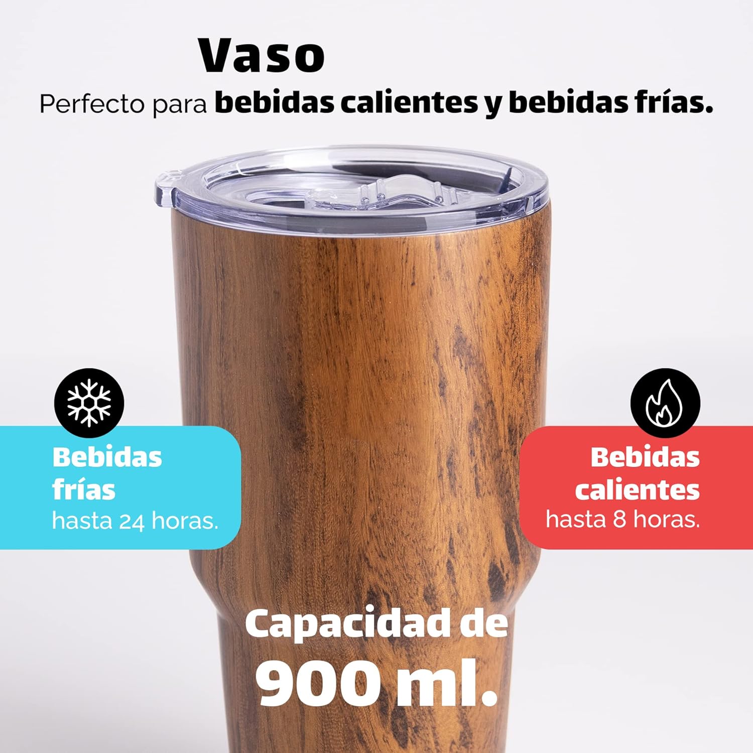 NORDAY | Tumbler with Lid - 30oz - Wood Insulated Tumbler - Stainless Steel Tumblers - Double Wall Vacuum Insulated Travel Coffee Mug for Car Cup Holder - Keeps Temperature for 24hr - Anti Spill Lid