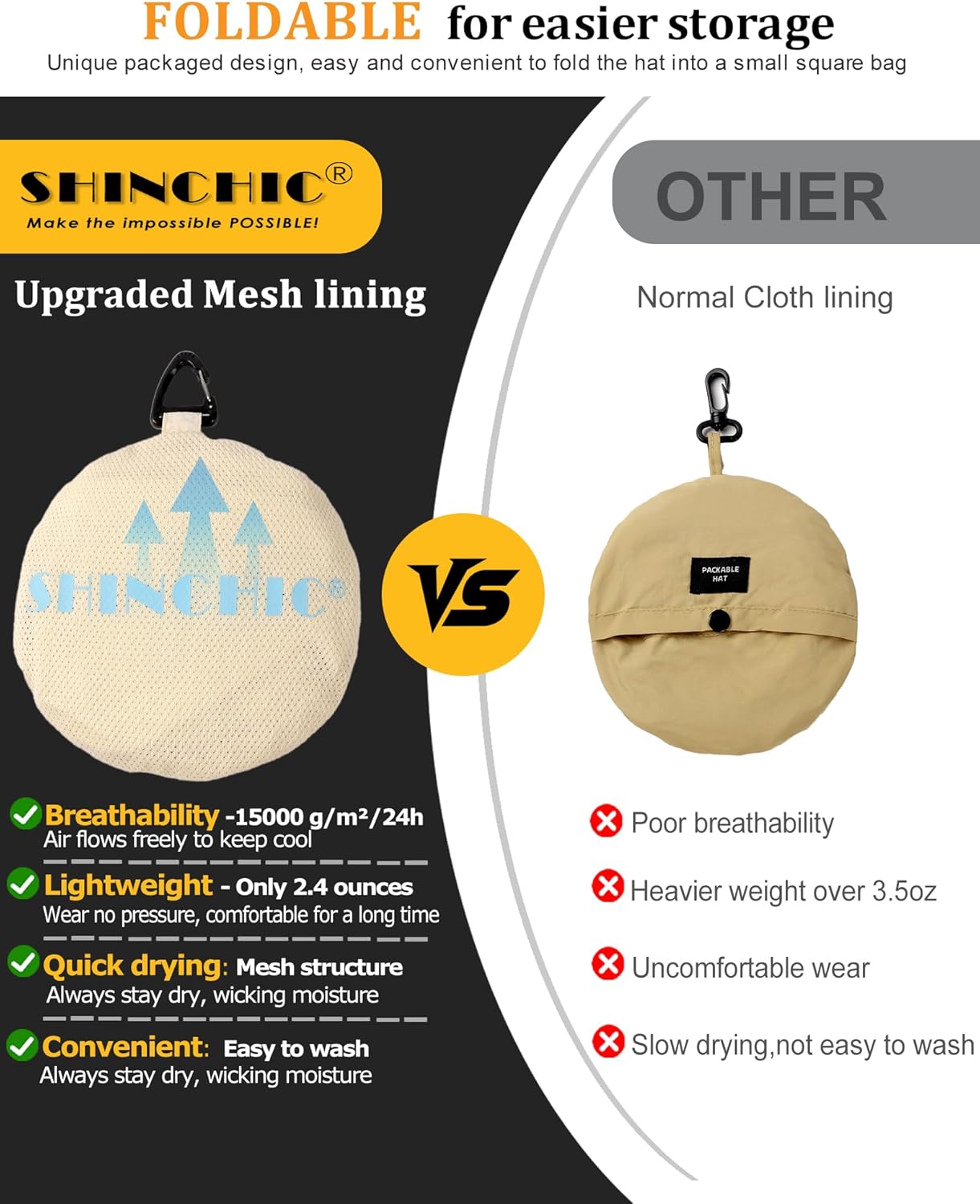 - Breathable to keep cool-The use of high-tech made fabric with a top mesh fabric design makes this outdoor packable fishing brimmed hat easier for moisture and heat to escape while allowing air to pass through the fabric and into your head, keeping you cool at all times.
