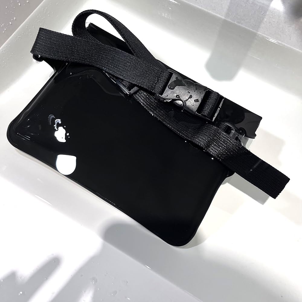 DRLOKPAK Waterproof Waist Bag Pouch Fanny Pack Bum Bag with Secret Holder Keeps Your Phone Kindle Wallet Watch & Valuables Dry - Perfect for Surf Canoe Swim Snorkel Dive Beach Pool(Black)