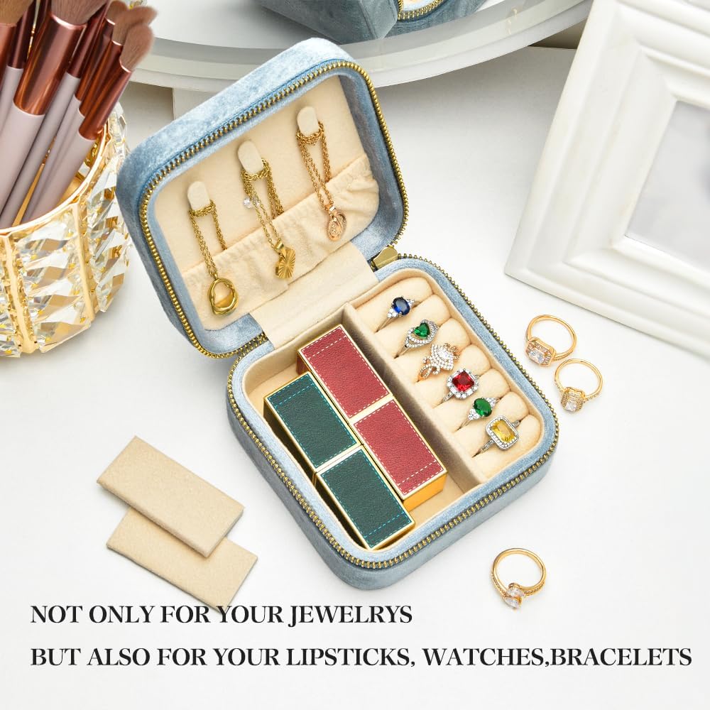 - 【Travel Essentials】Our velvet jewelry box is compact and sturdy, but it can hold enough jewelry for your trip, easily storage multiple rings, earrings, necklaces, and other small items. If you're still struggling with how to carry your favorite jewelry while traveling, this mini jewelry travel case will be the perfect solution to your jewelry storage problem, which prevents your jewelry from getting lost or tangled, and keeping them organized in a safe place.