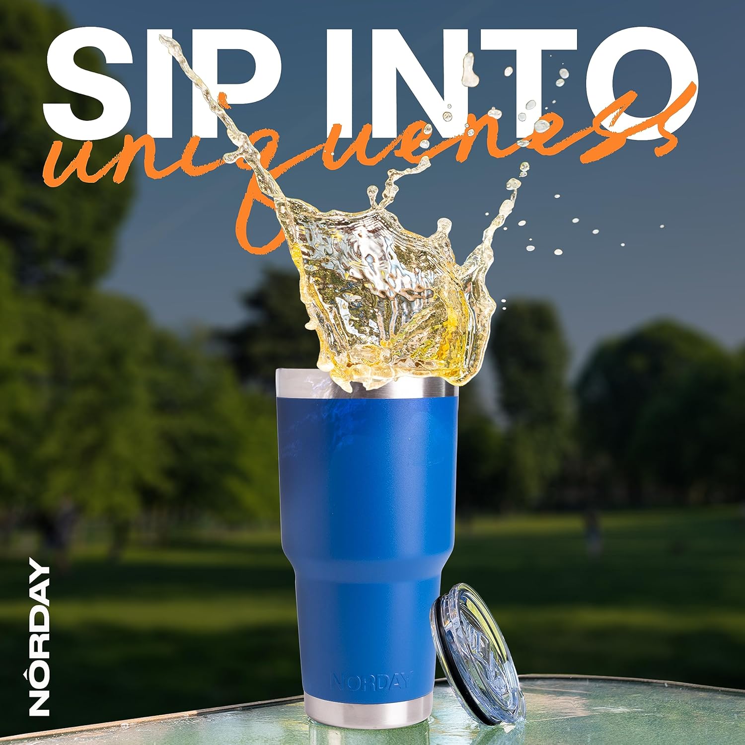 NORDAY | Tumbler with Lid - 30oz - Blue Insulated Tumbler - Stainless Steel Tumblers - Double Wall Vacuum Insulated Travel Coffee Mug for Car Cup Holder - Keeps Temperature for 24hr - Anti Spill Lid
