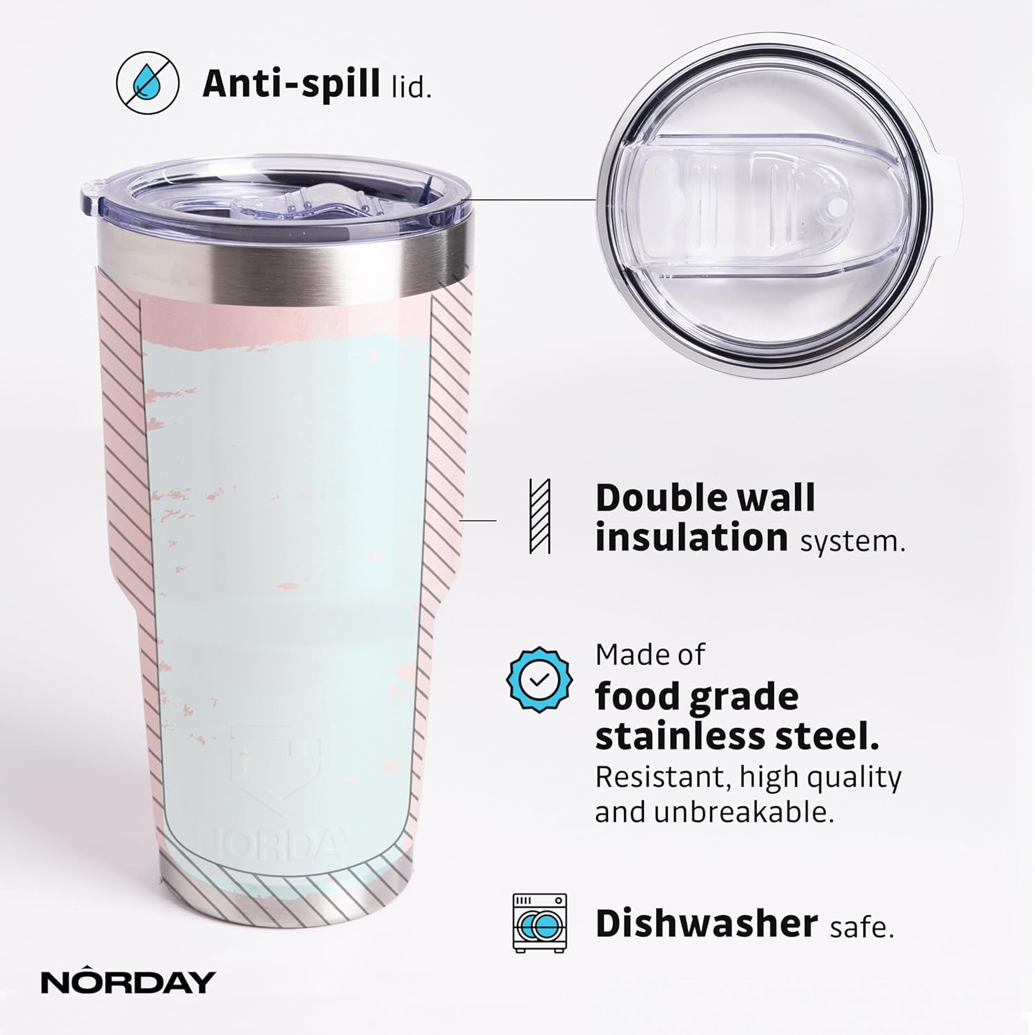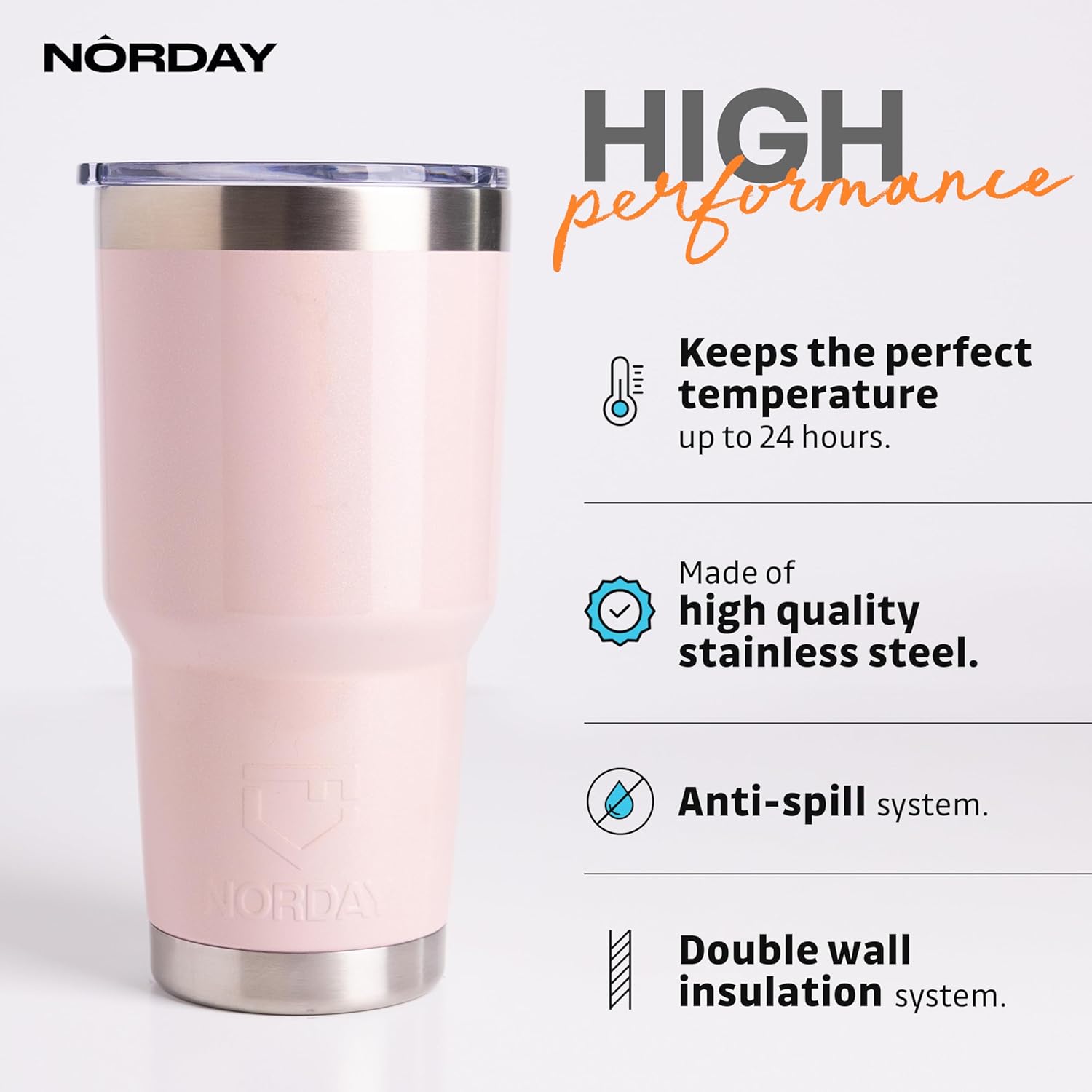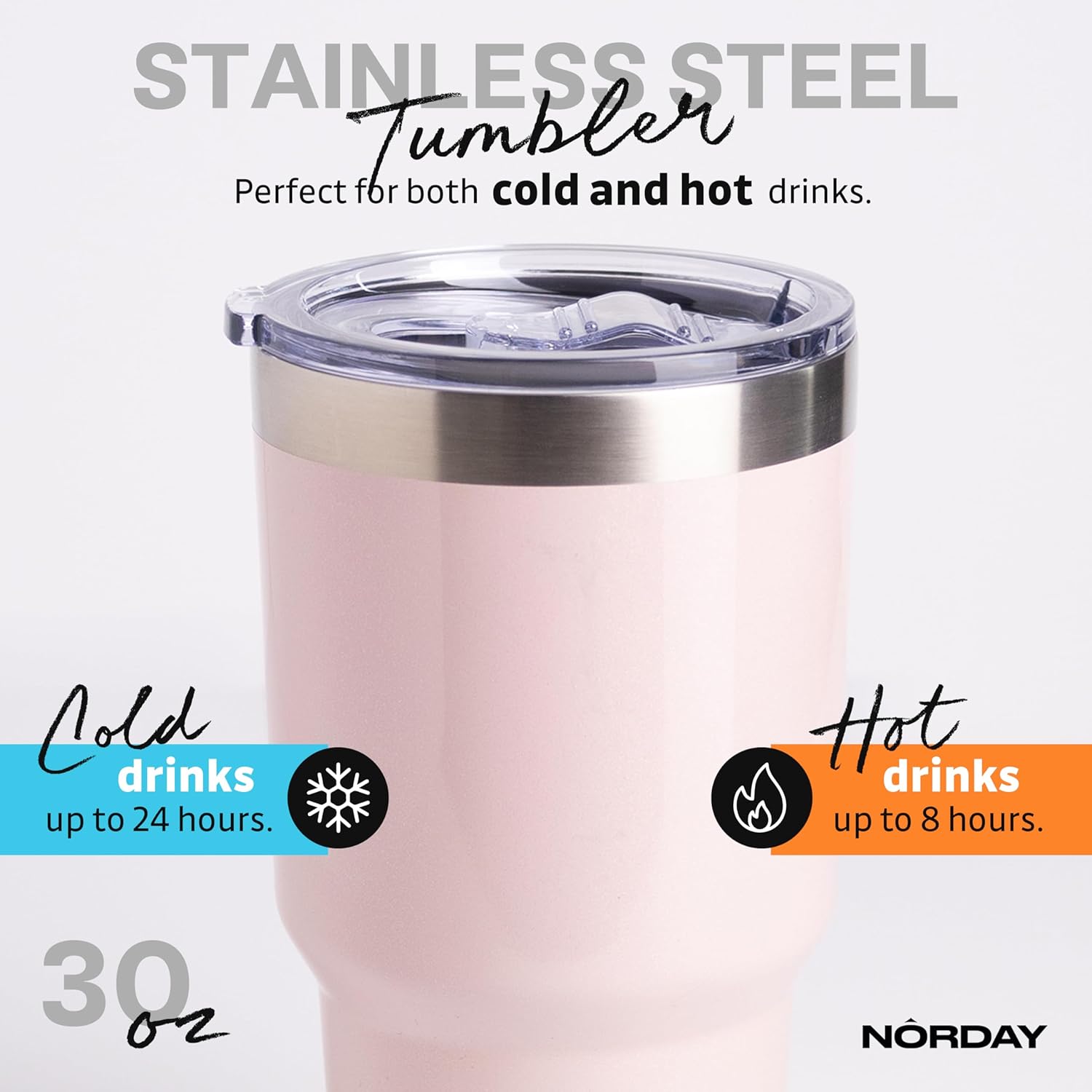 NORDAY | Tumbler with Lid - 30oz - Blush Glitter Insulated Tumbler - Stainless Steel Tumblers - Double Wall Insulated Travel Coffee Mug for Car Cup Holder - Keeps Temperature for 24hr - Anti Spill Lid