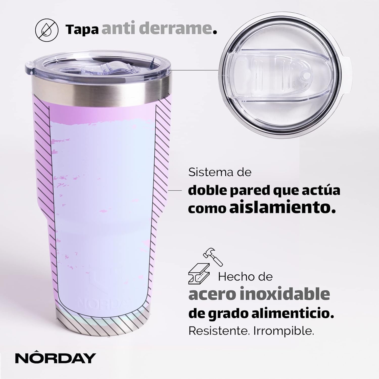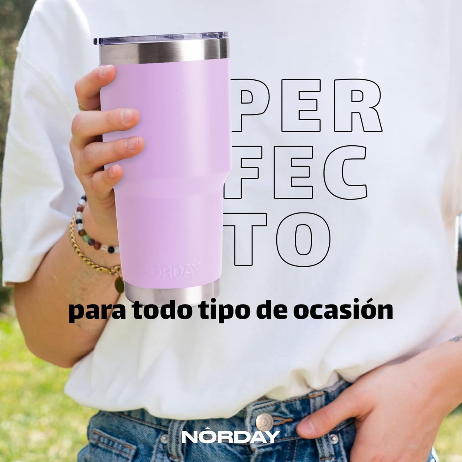 NORDAY | Tumbler with Lid - 30oz - Light Purple Insulated Tumbler - Stainless Steel Tumblers - Double Wall Insulated Travel Coffee Mug for Car Cup Holder - Keeps Temperature for 24hr - Anti Spill Lid