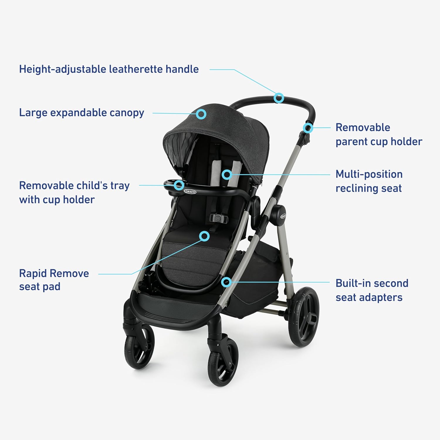 - Stroller accepts all Graco Infant Car Seats to use from birth as a car seat carrier or travel system (infant car seat sold separately)